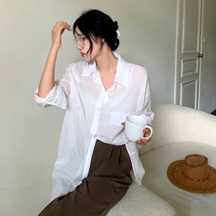 スタンダードスタイルシャツ 夏服トップス ルーズジャケット レディース ロング レトロ 夏物 長袖 MONROE79074559157