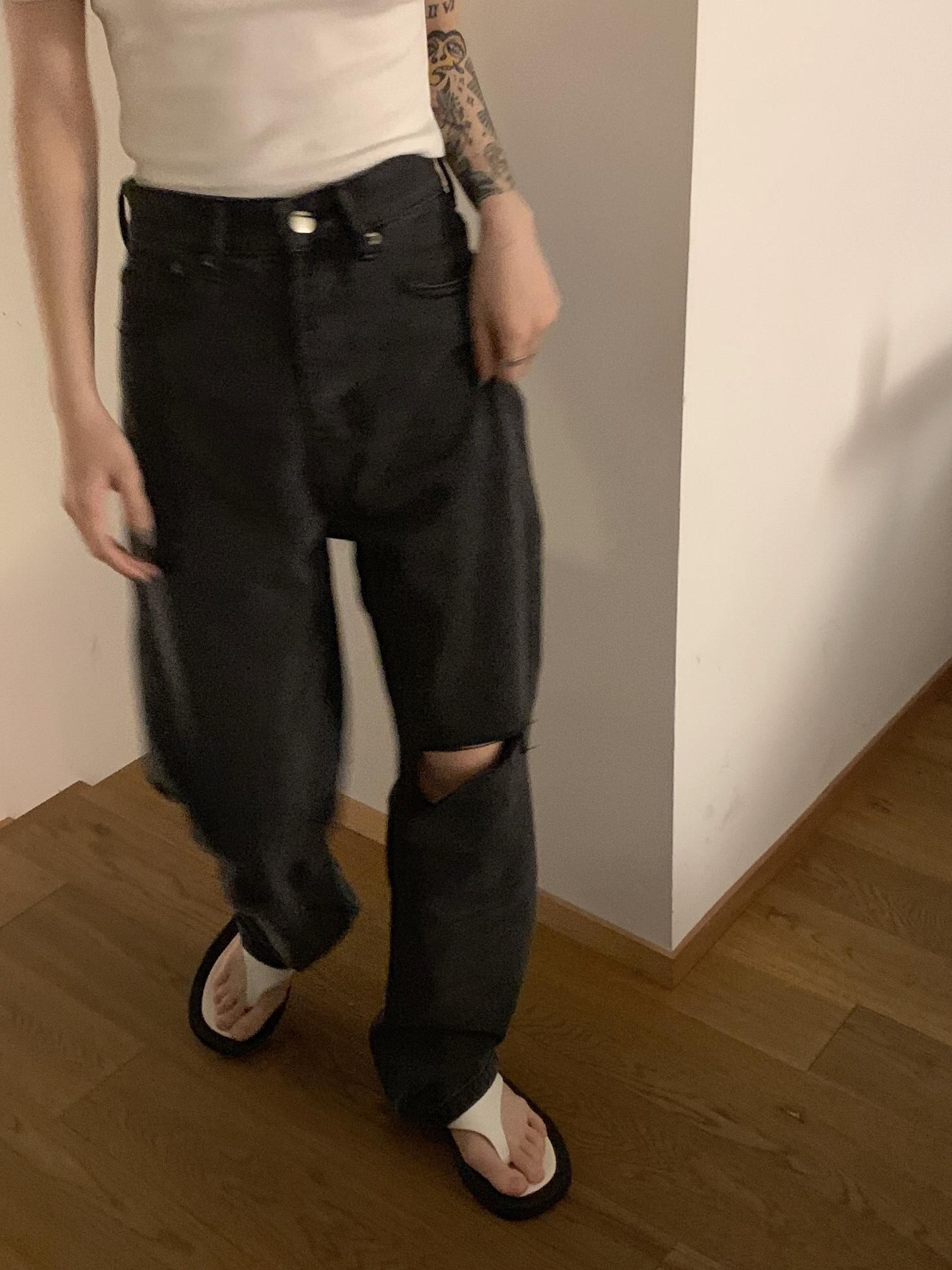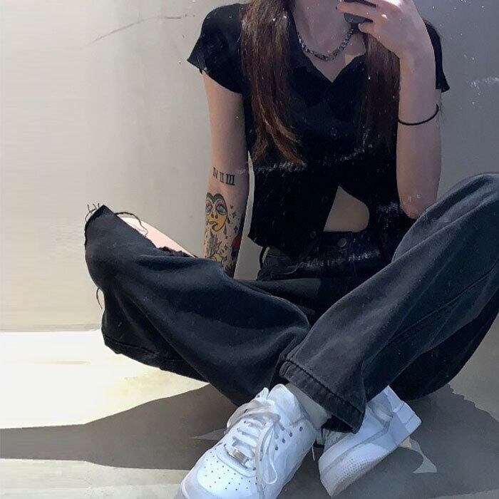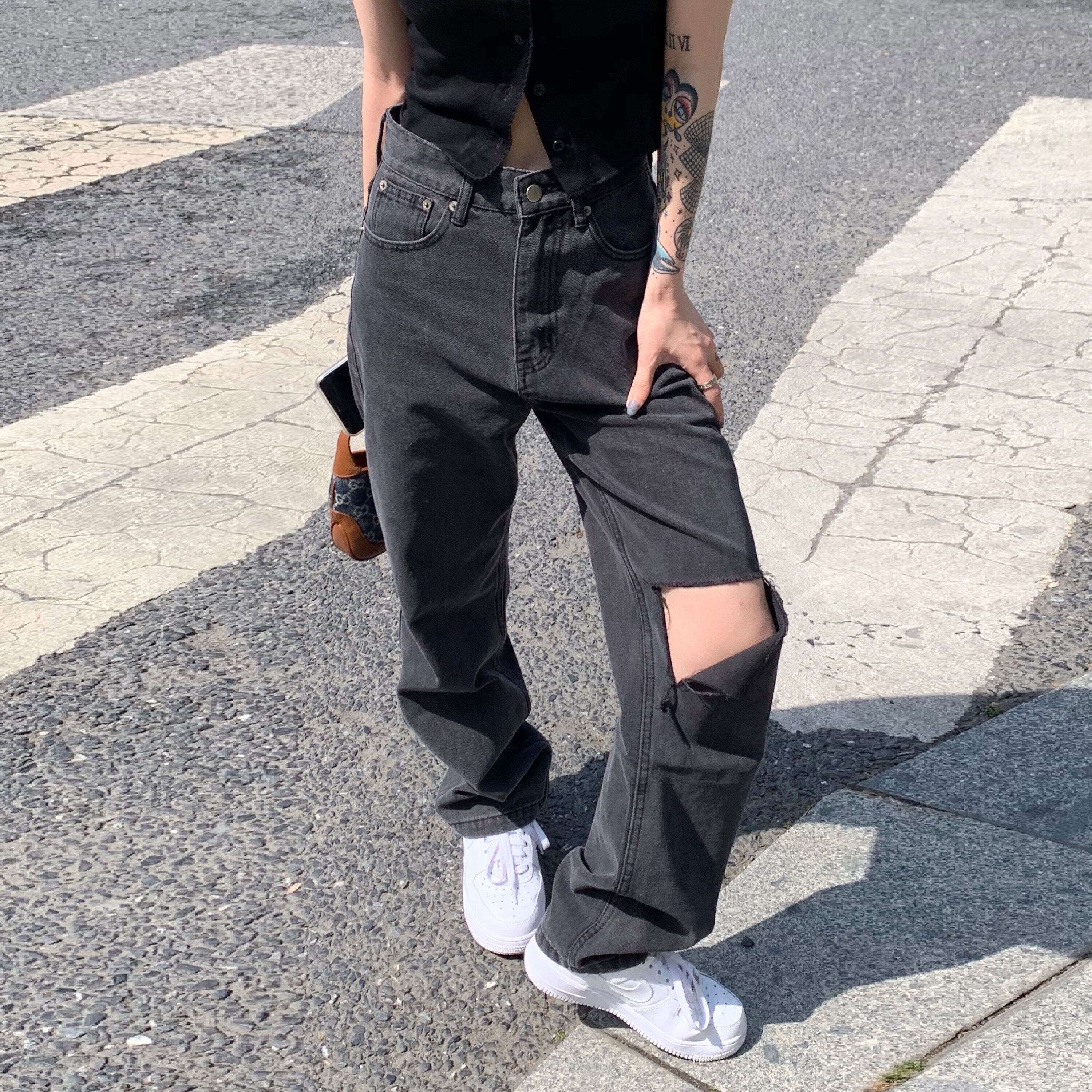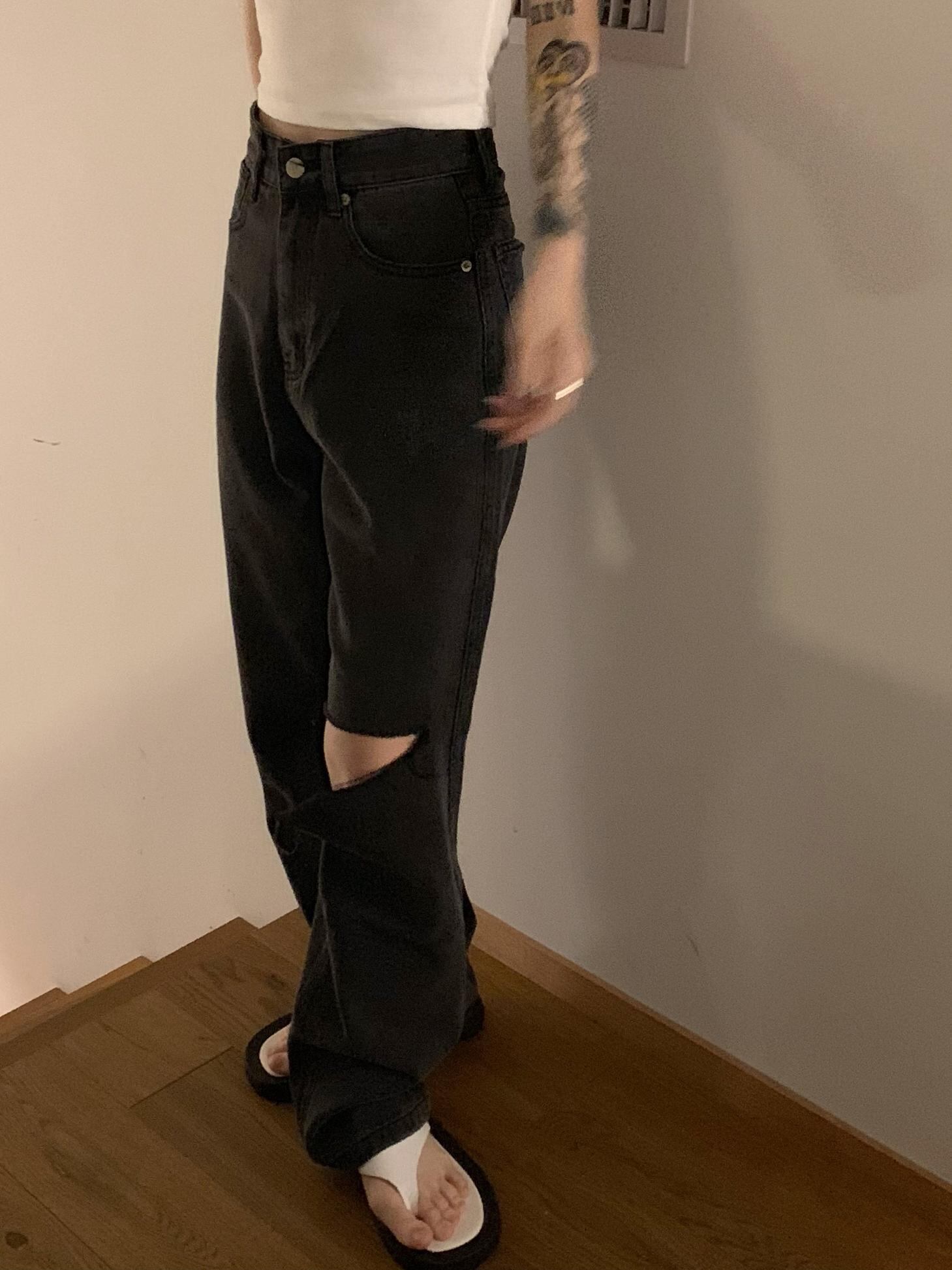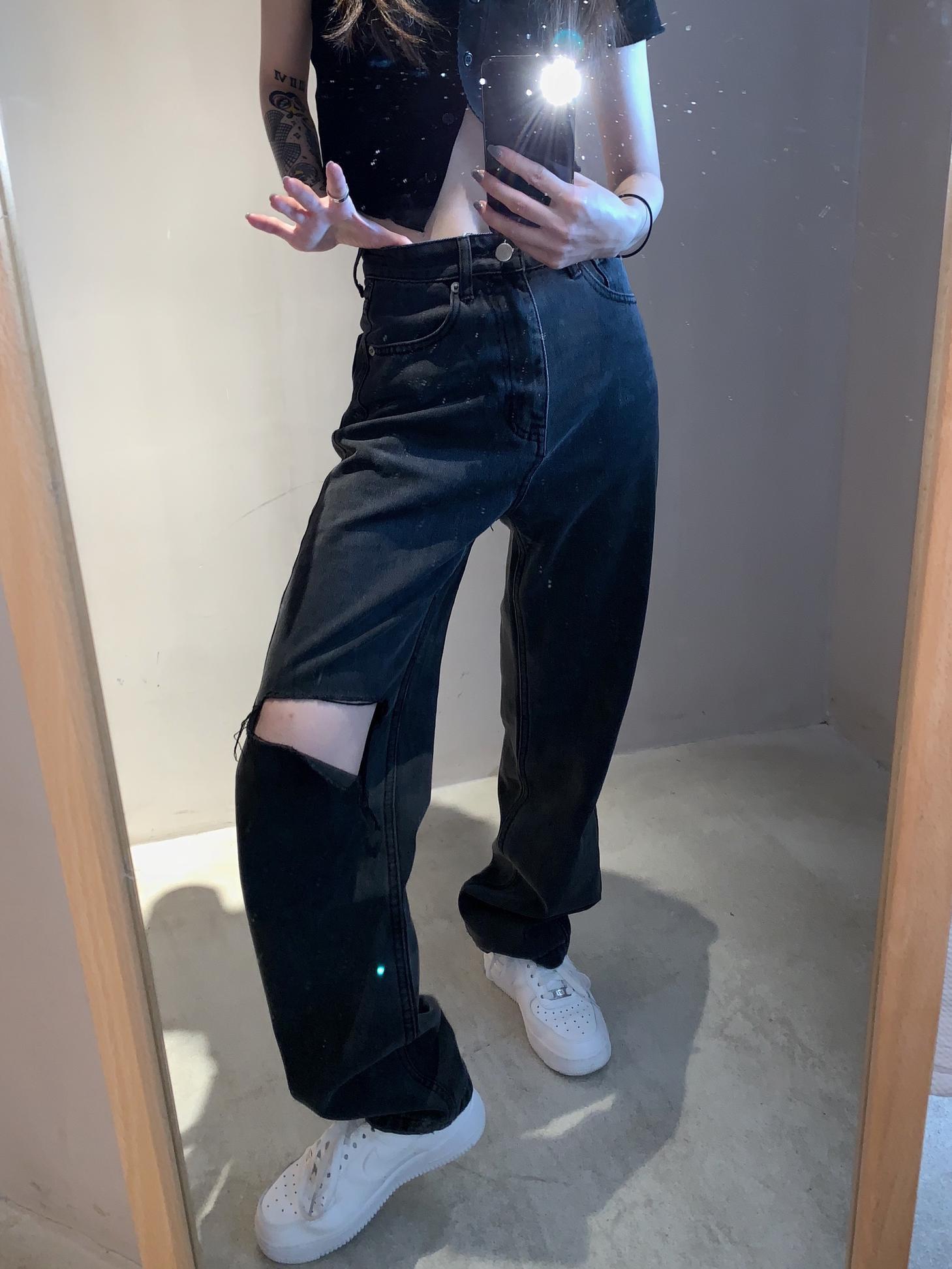ブラックジーンズ 夏服ルーズパンツ ハイウェスト 夏物 ウエスト MONROE15414813711