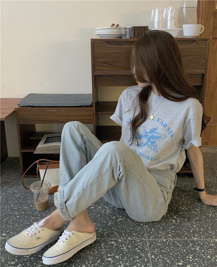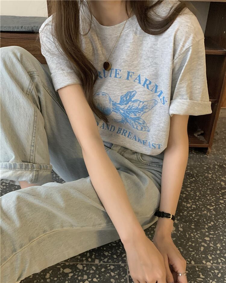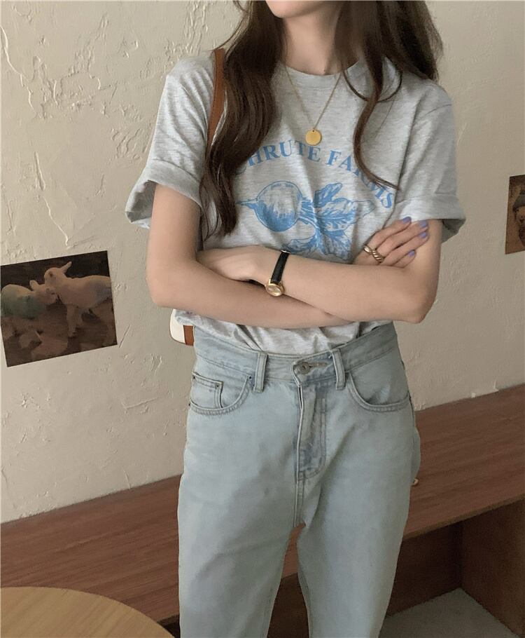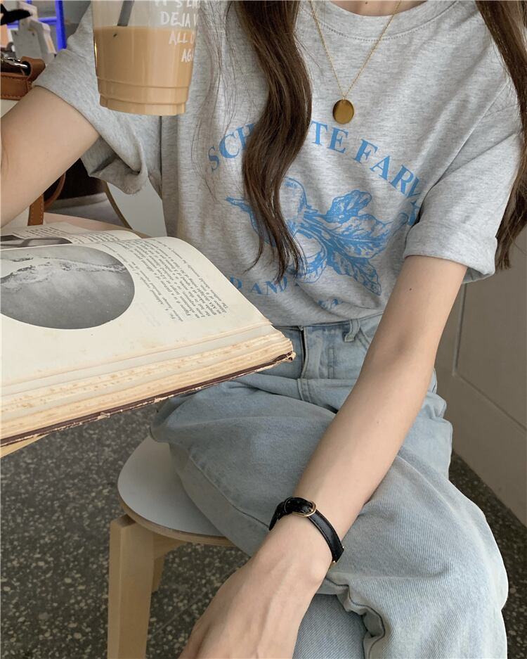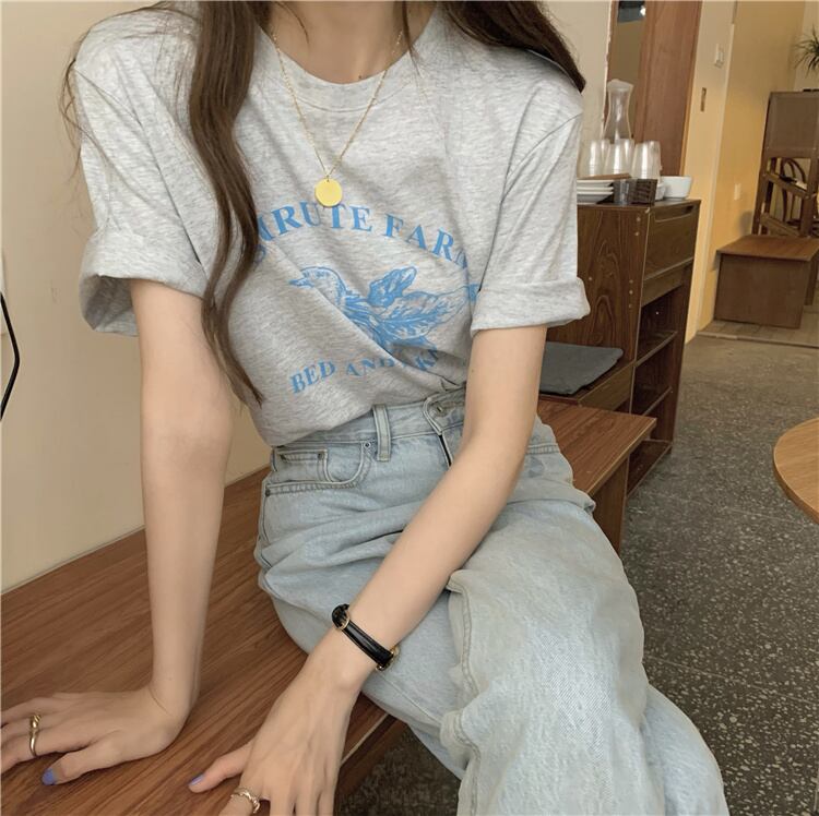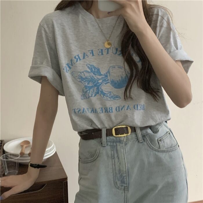 グレーTシャツレディースルーズショート夏服トレンドトップス コットン 夏物 MONROE65484757133