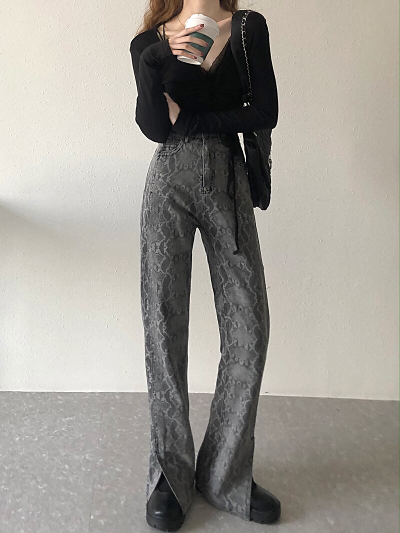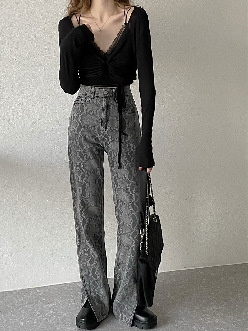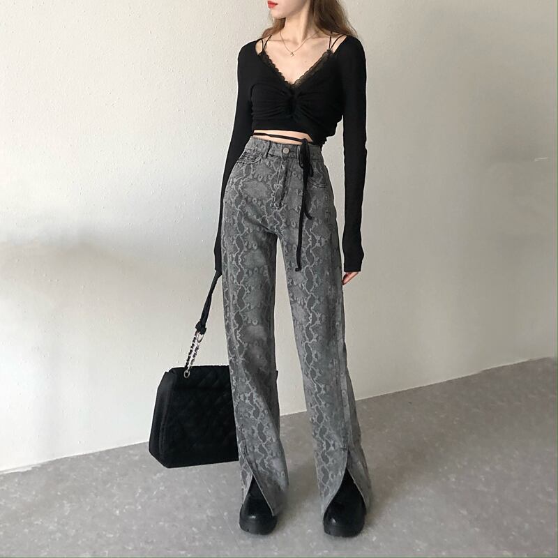 ブラックジーンズ ルーズパンツ 夏服ハイウェスト薄手 夏物 ウエスト MONROE51413866325