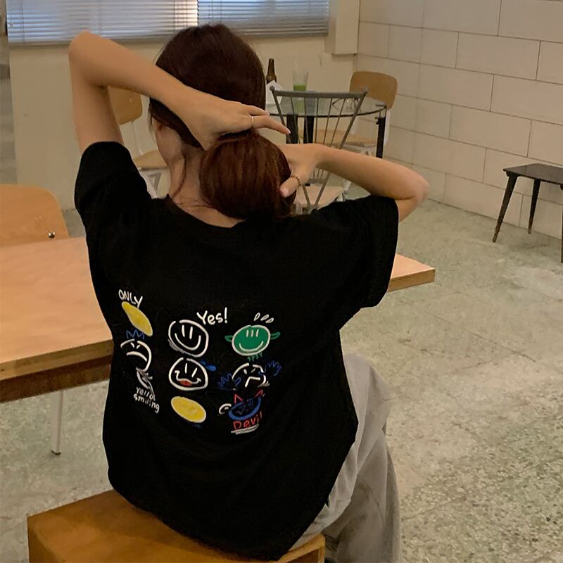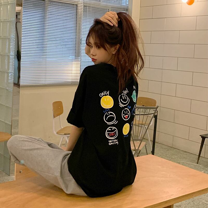 ブラックルーズトップス 夏服Tシャツトレンド コットン 夏物 ミドル丈 MONROE88054525121