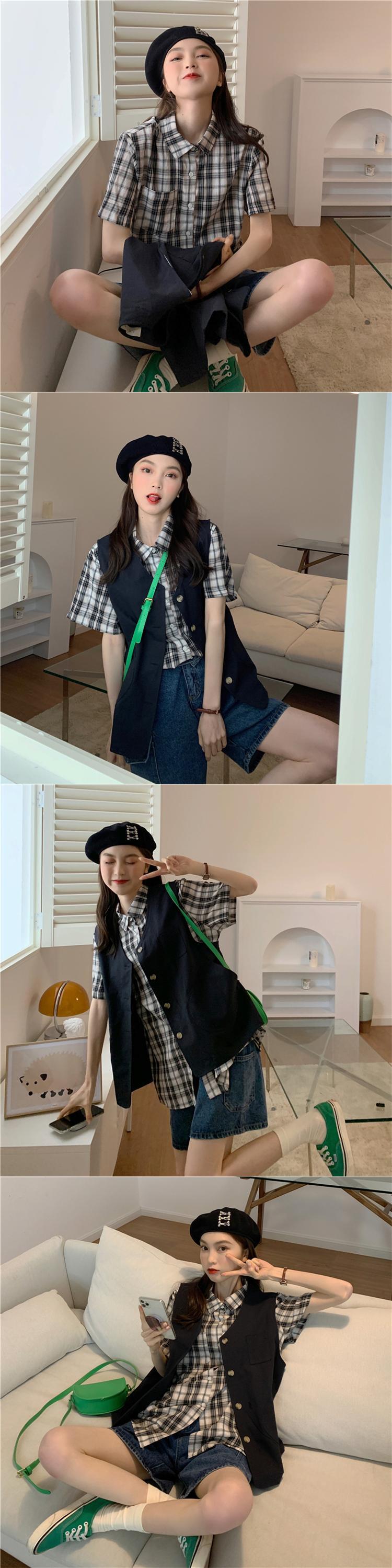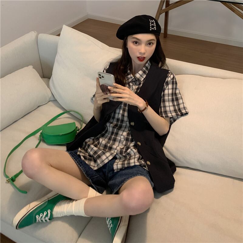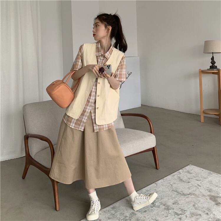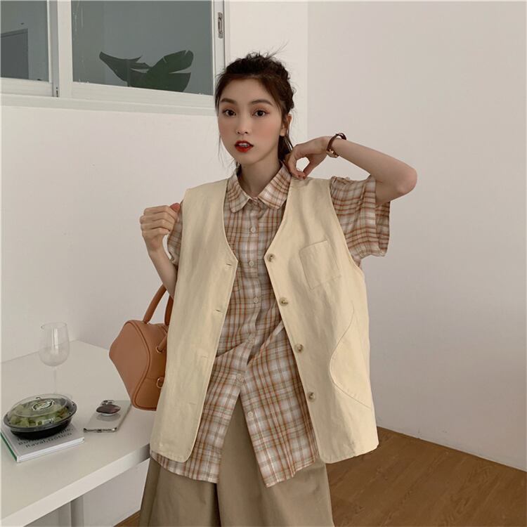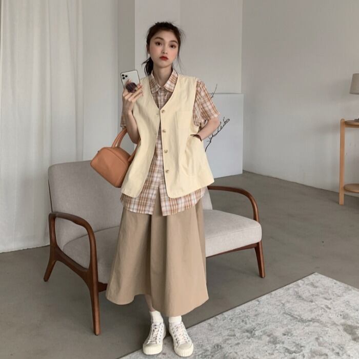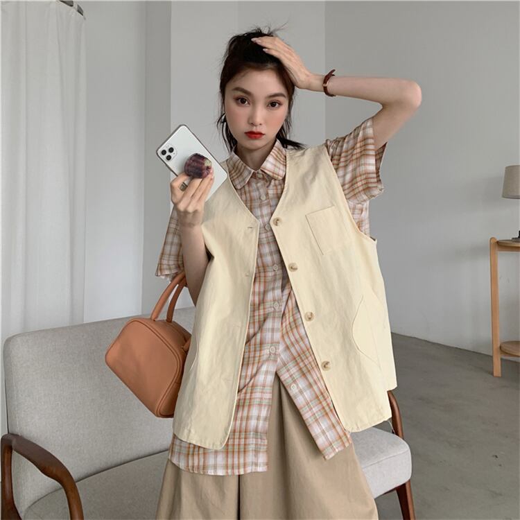 色:カーキベスト,ネイビーブルーベスト,カーキ色のシャツ,黒いシャツ