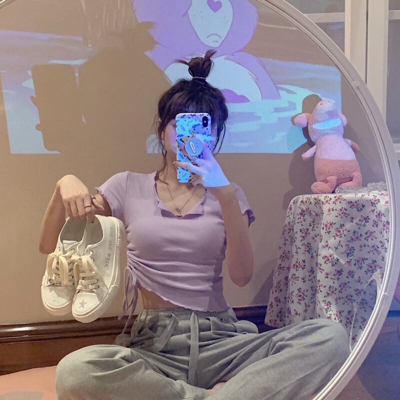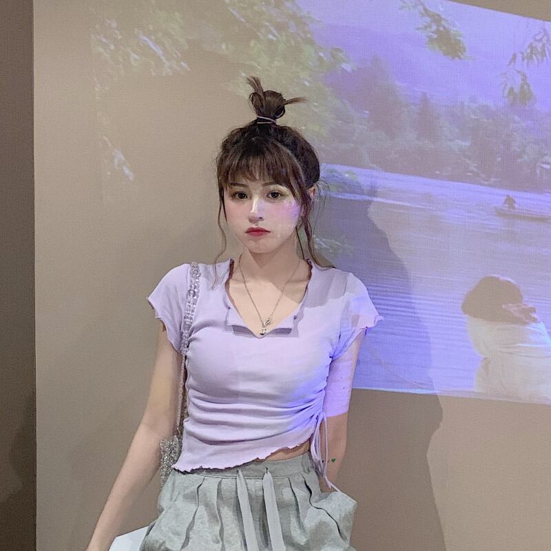 ショートTシャツレディース夏服トップス トレンド 夏物 パープル ワンナンバー17150238989