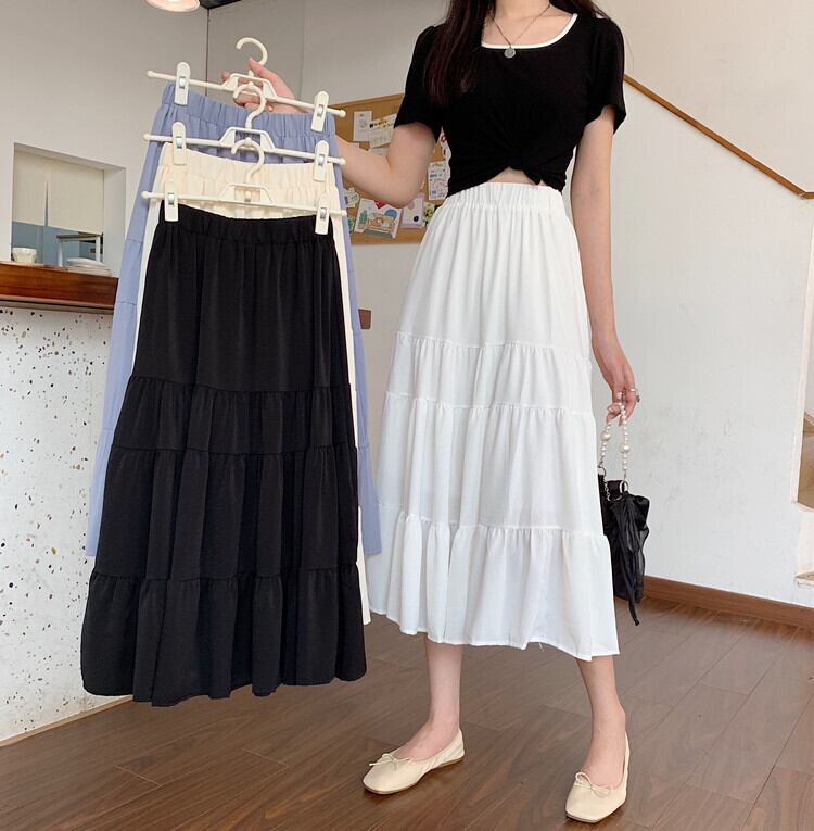 スプリング夏服スカート レディースAラインハイウェストウェスト 春物 夏物 ステッチ ウエスト ミドル丈 ワンナンバー84803923465