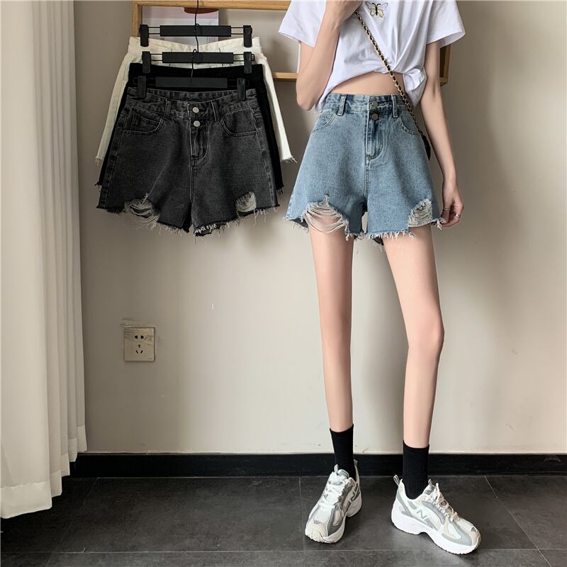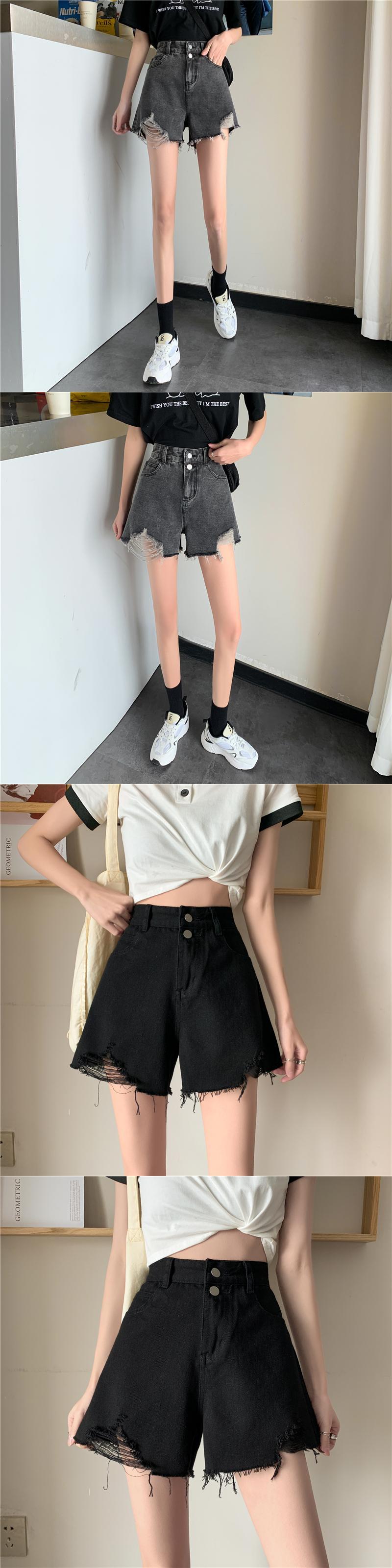 スプリング夏服ジーンズ 韓国ファッションスタイルハイウェストウェスト薄手ルーズAラインショーツ 春物 夏物 ウエスト ワンナンバー81420051355