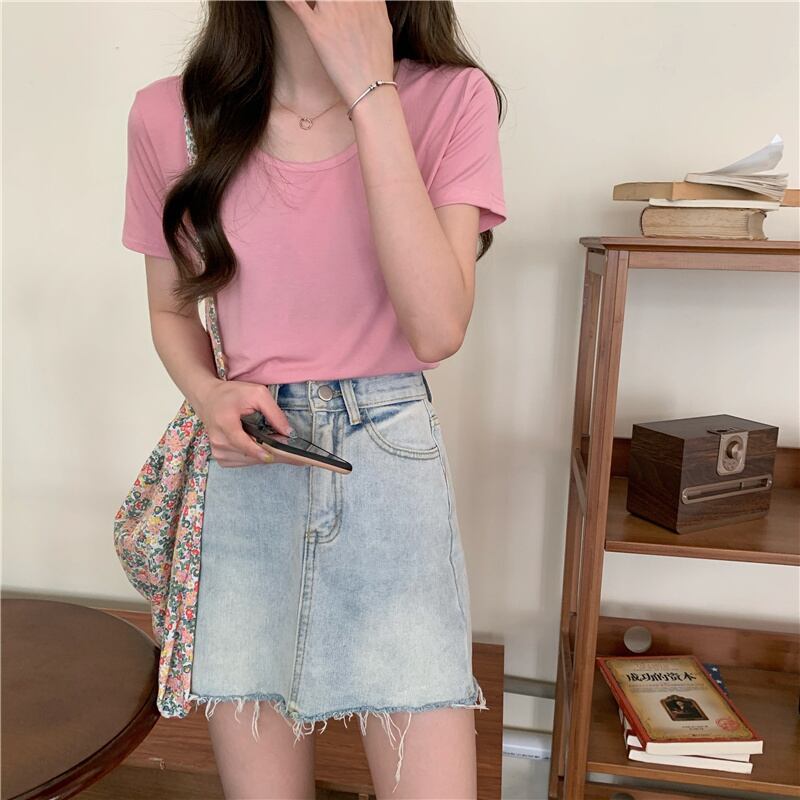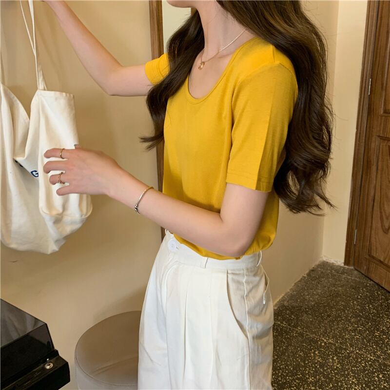 ホワイトショートTシャツシャツ スプリングゆったりラウンドネックトップス 春物 Oネック ワンナンバー10058559805