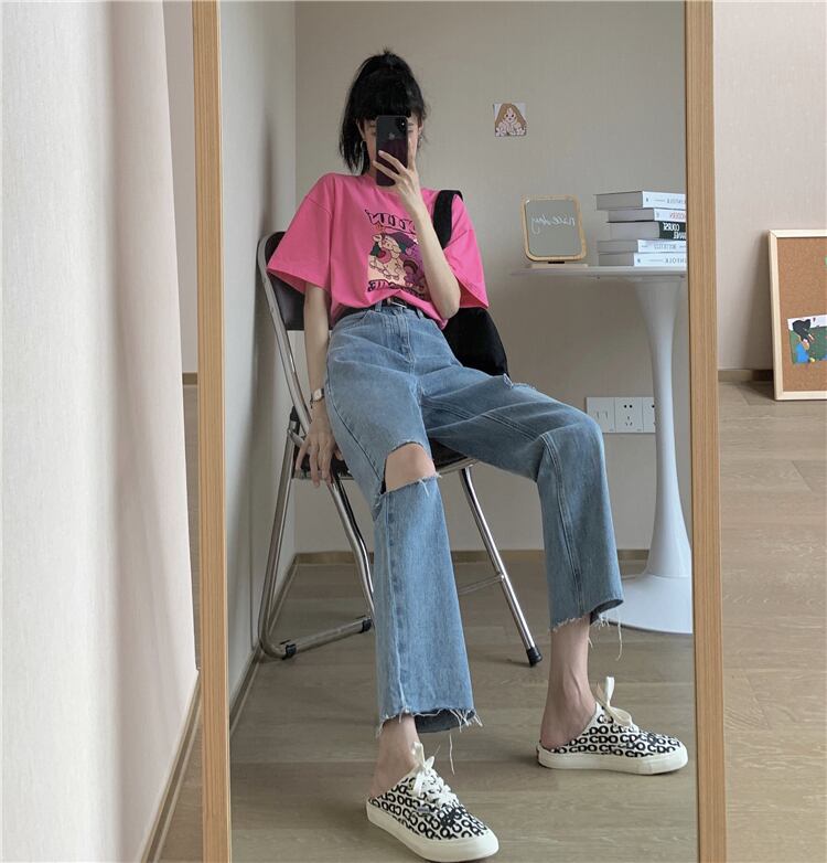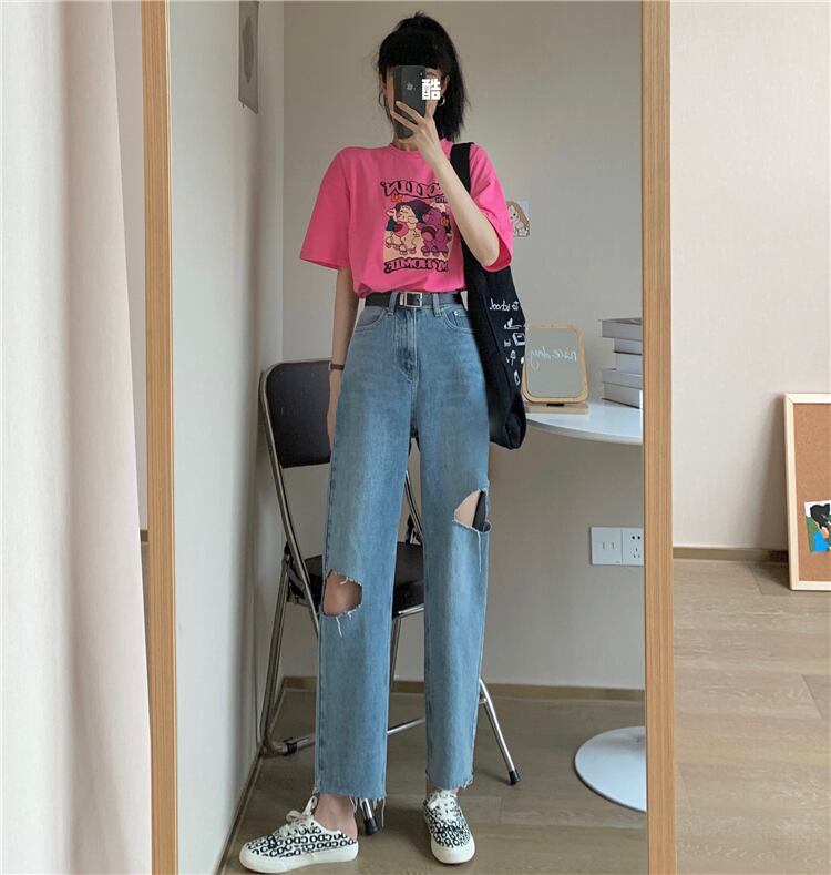 ジーンズ レディース夏服韓国ファッションルーズパンツ ハイウェスト薄手 夏物 スタイル ウエスト YY58194099708