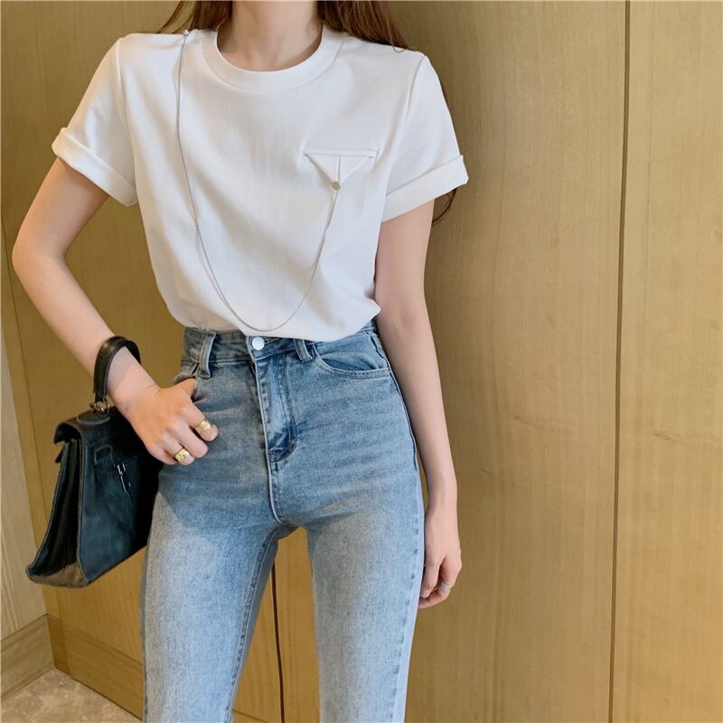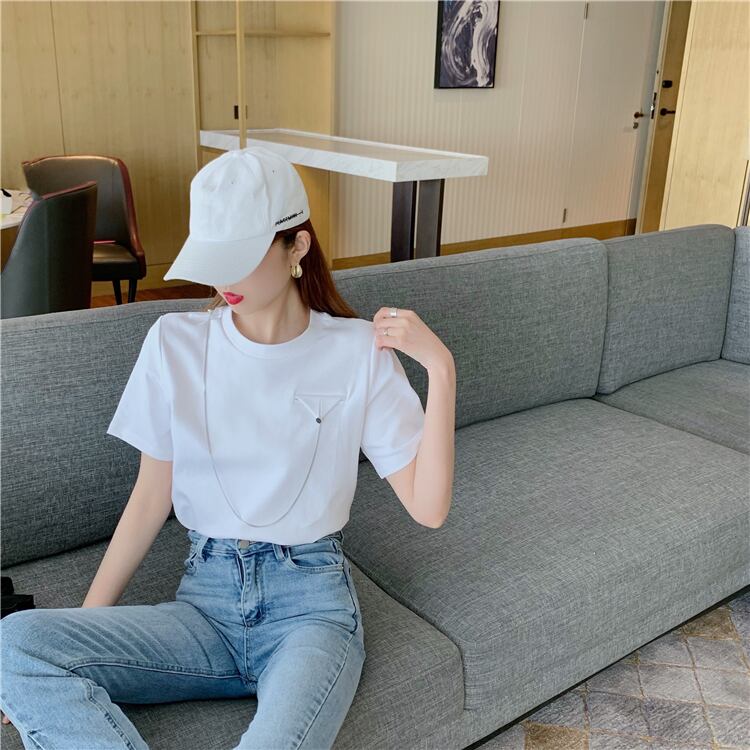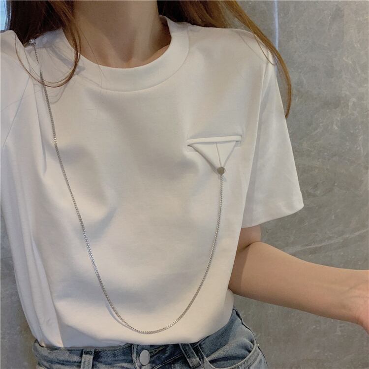 ホワイトTシャツレディース韓国ファッション薄手チェーン 夏服ルーズラウンドネックトップス 夏物 Oネック スタイル YY3239118925
