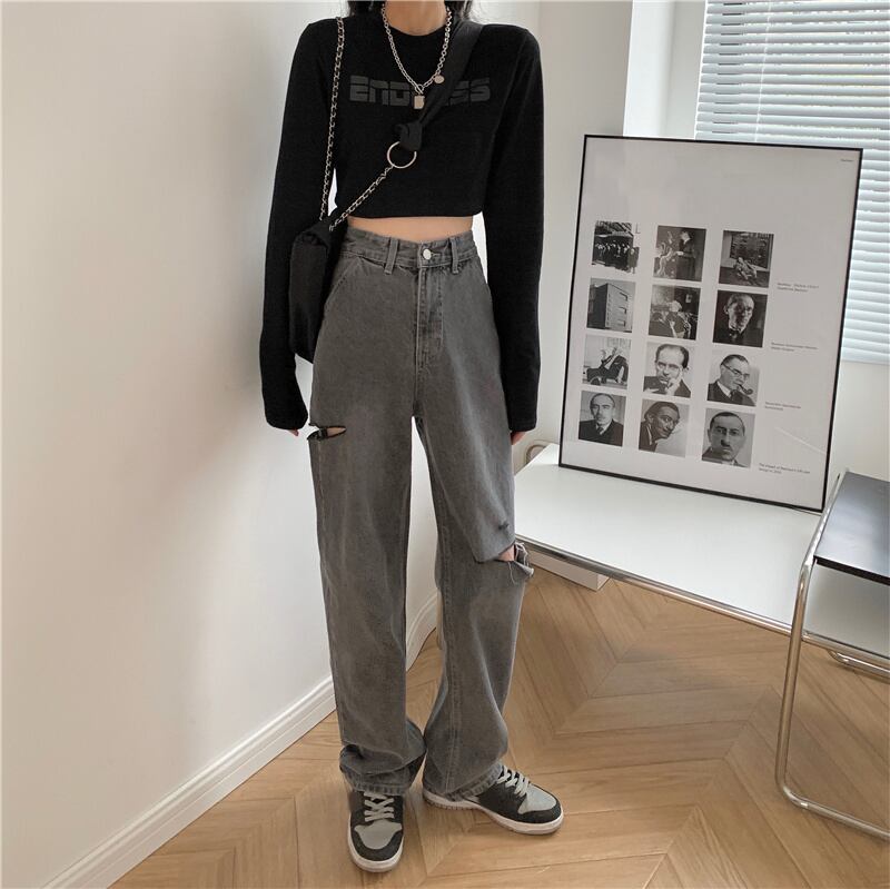 スタンダード薄手ジーンズ ルーズパンツ スプリングハイウェストウェスト レトロ 春物 ウエスト YY50440629582