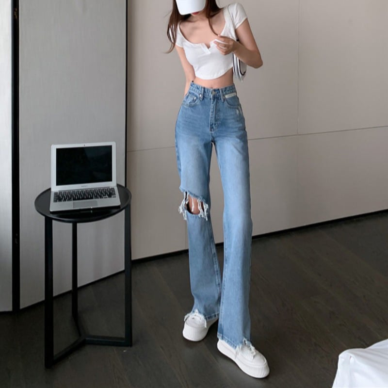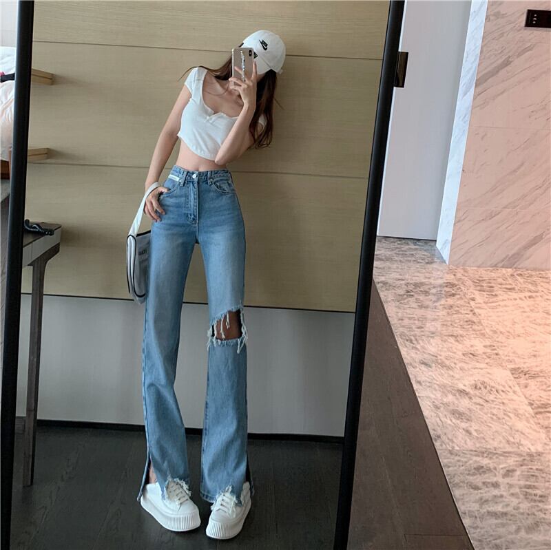 ジーンズ レディース韓国ファッションルーズパンツ スプリングハイウェストウェストスリム 春物 スタイル ウエスト YY1497846234