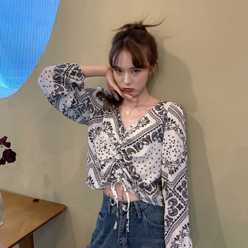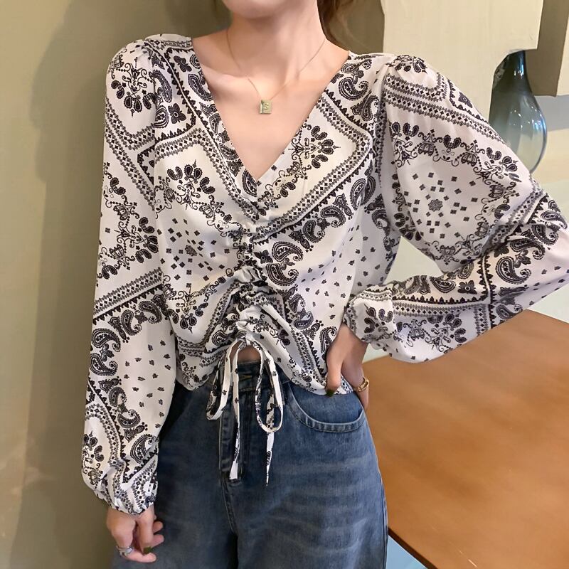スタンダードシャツ レディーススプリング秋物Vネックトップス レトロ 春物 オータム YY91498730635