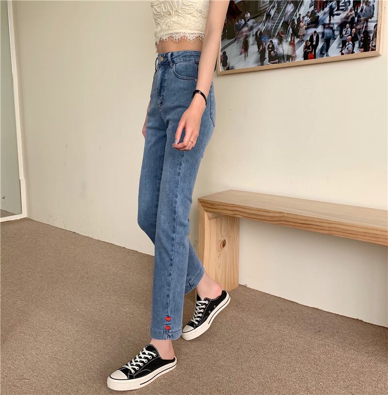 夏服韓国ファッション刺繍スリットパンツ ハイウェストウェストジーンズ レディース 夏物 スタイル ウエスト YY28584611615