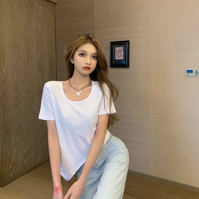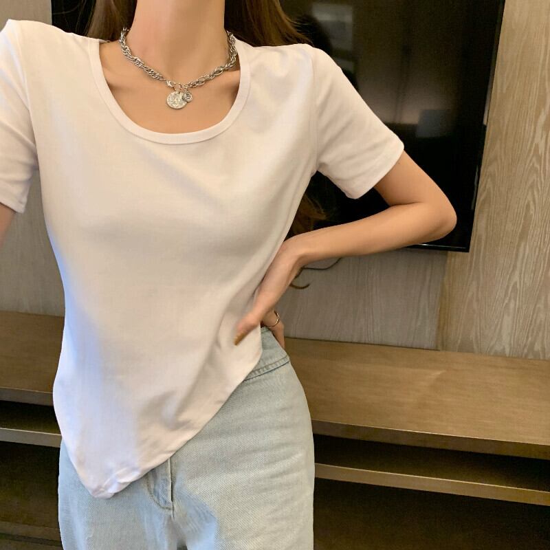 トップス 夏服ルーズゆったりシャツ ホワイトTシャツ 夏物 YY61445695551