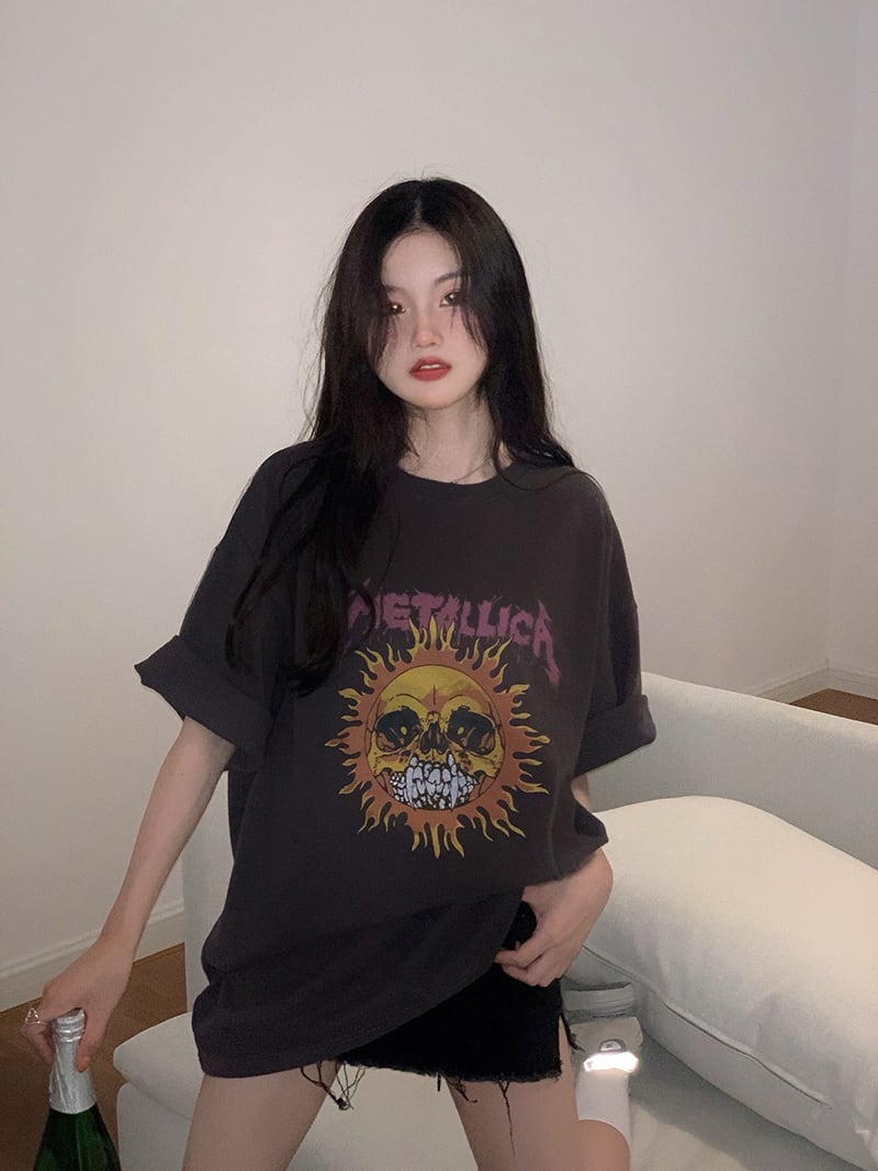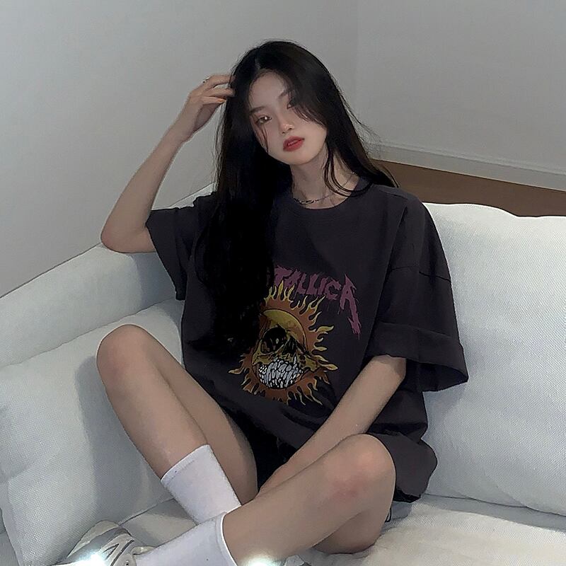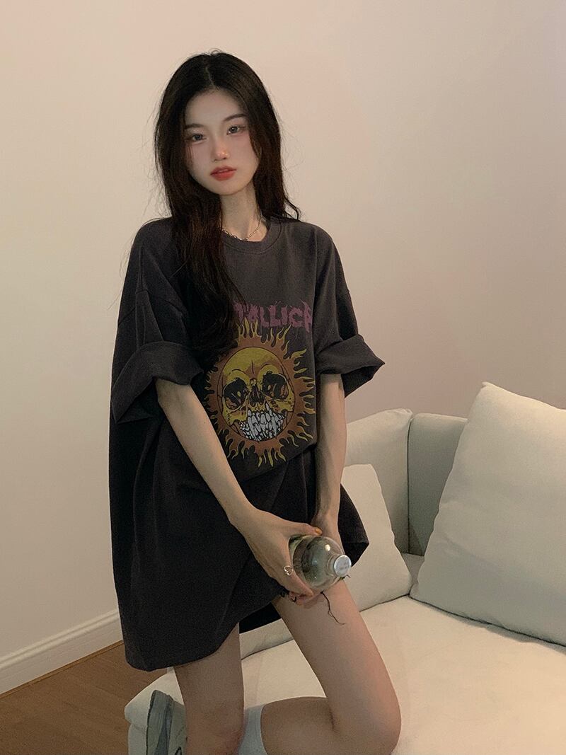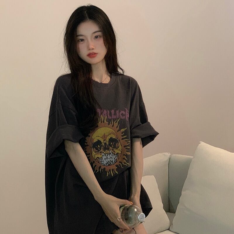 プリントTシャツレディース夏服スタンダードスタイルルーズトレンドスリムトップス レトロ 原宿 夏物 YY91780186946