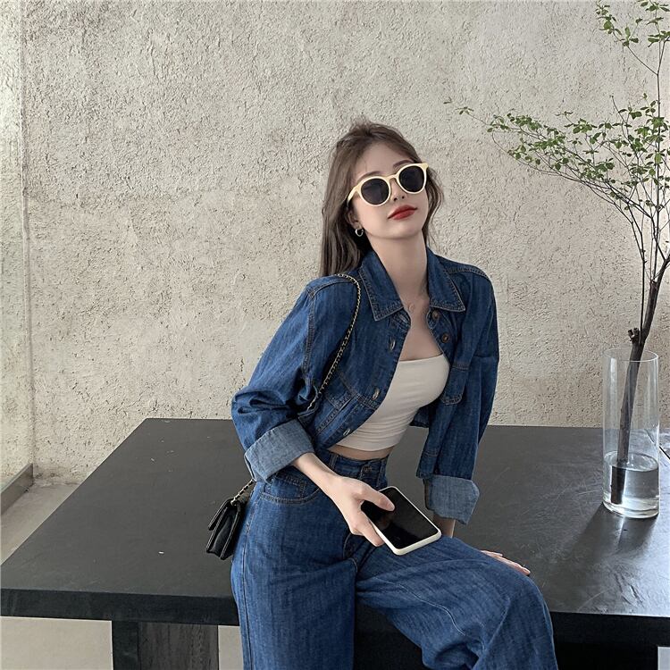 スタイルスタンダードショートジャケット ハイウェストウェストワイドレッグパンツ スプリング レトロ 春物 ワイドパンツ ウエスト YY35443791728