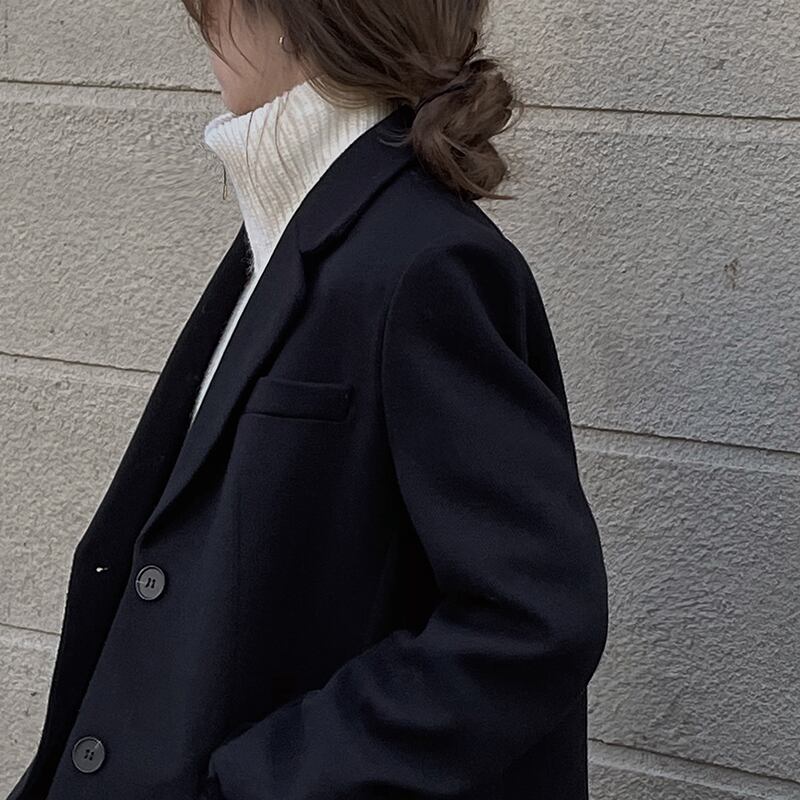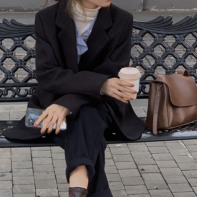 ブラックジャケット レディーススプリングカジュアルルーズ韓国ファッションスタイルトップス ストリート 春物 ミドル丈 YY33467573100