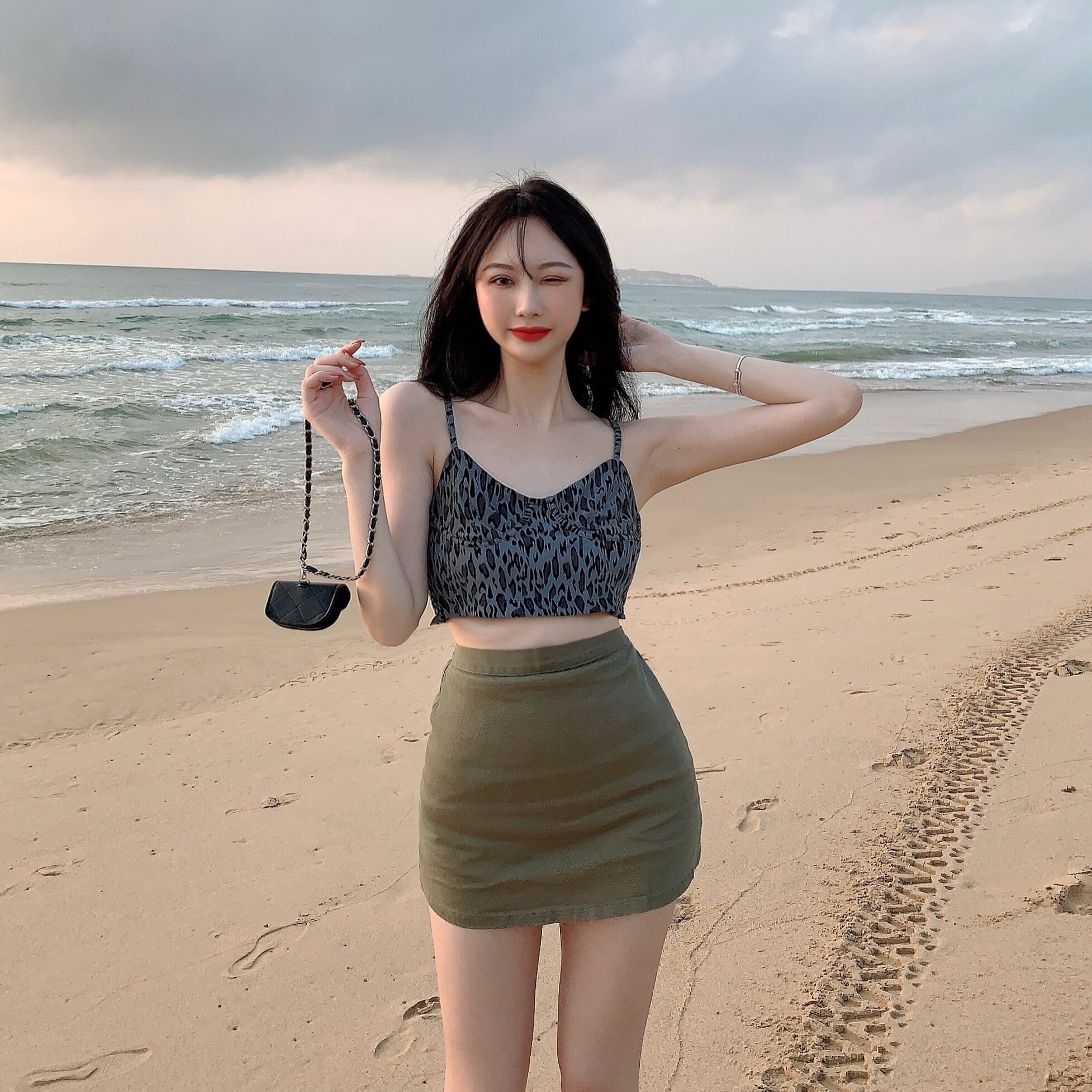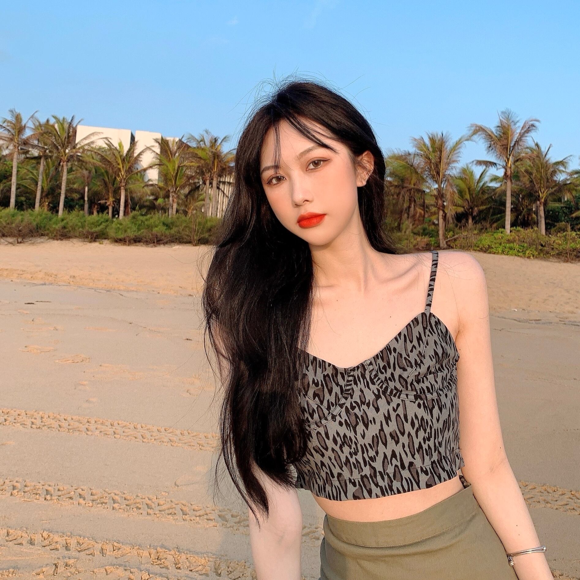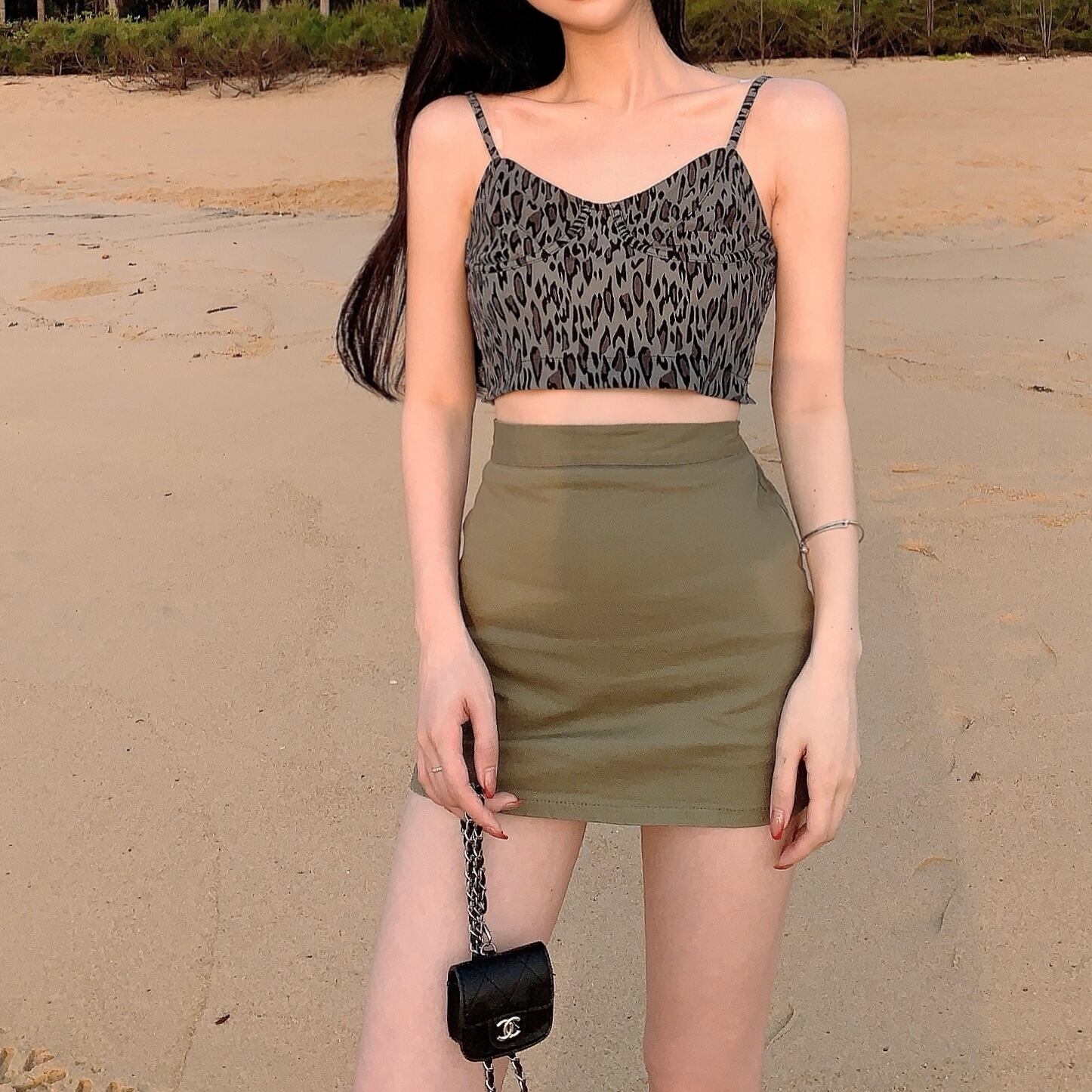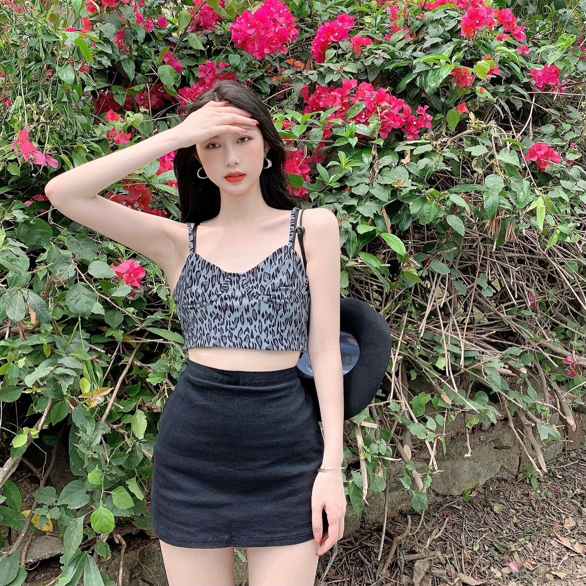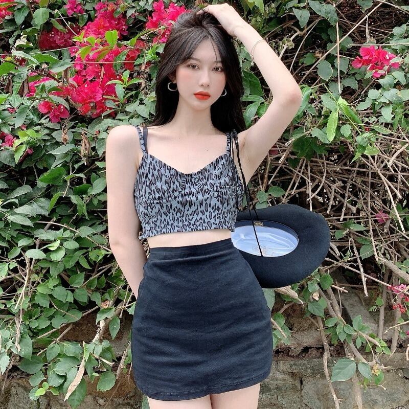 ウェストスタンダードスカート 夏服スリムAラインレオパードプリント柄 レトロ 夏物 ウエスト YY44439190007