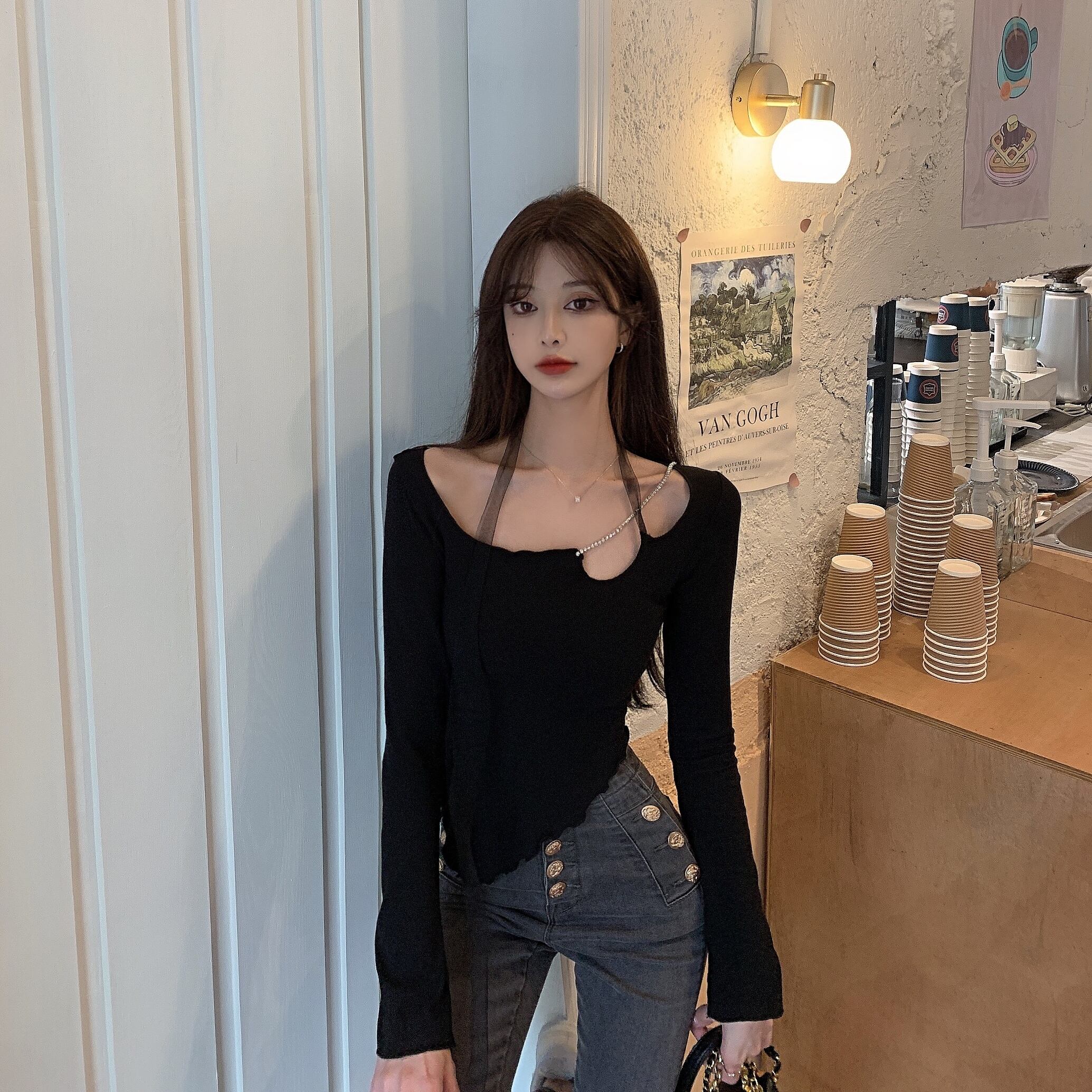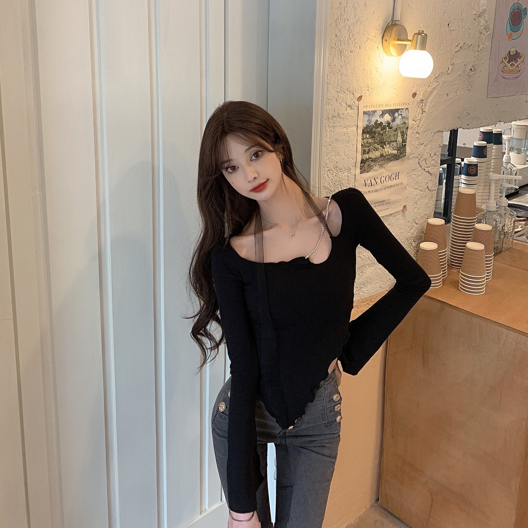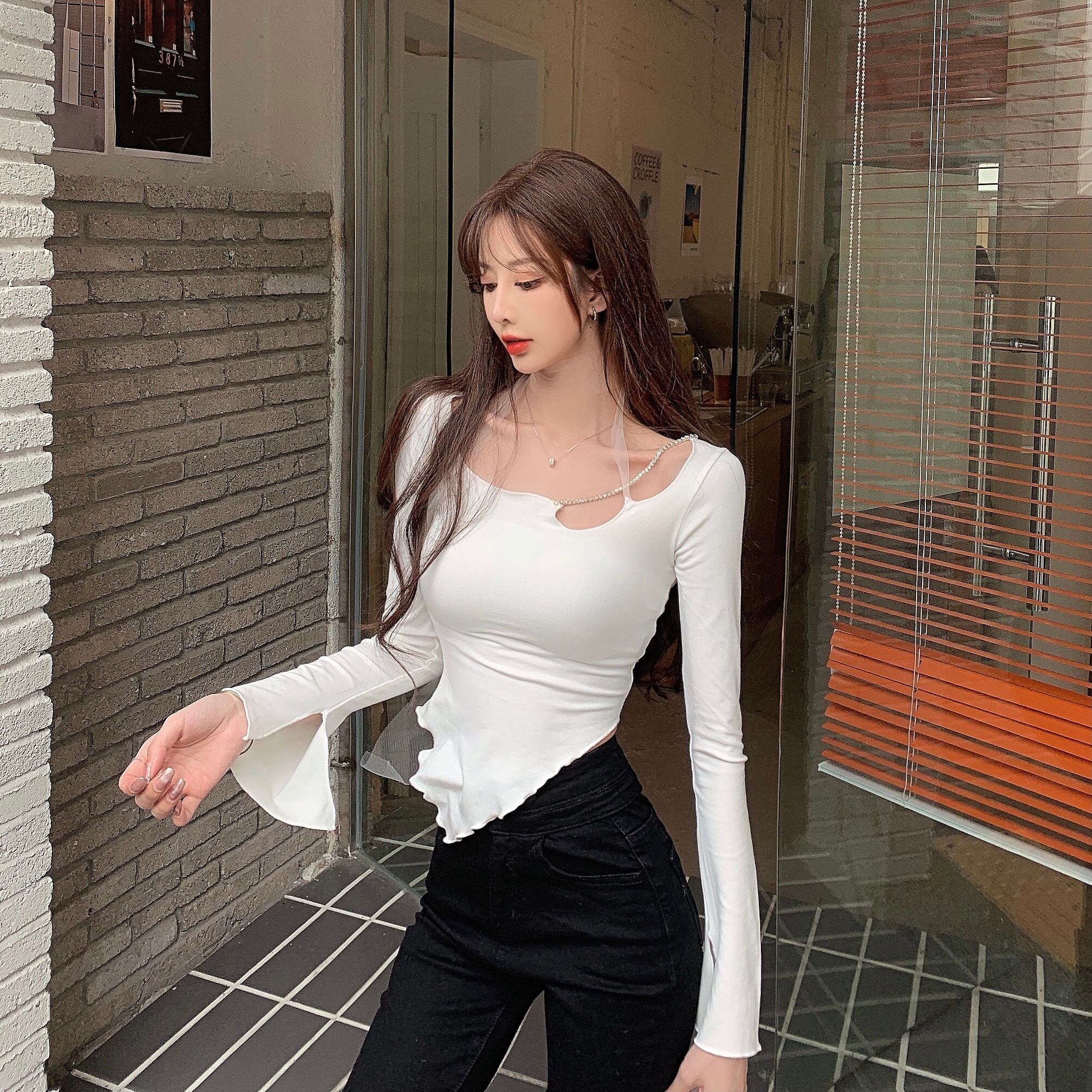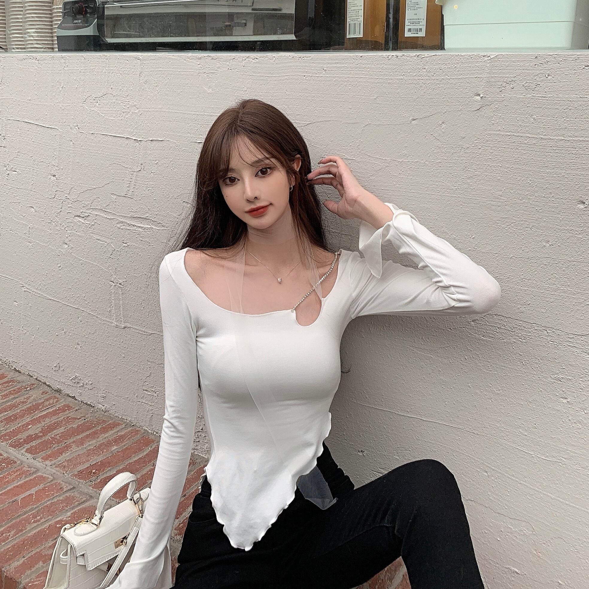 Tシャツシャツ トレンドゆったりスプリングトップス ロング 春物 長袖 YY19641037151