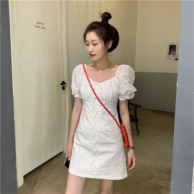 スカート レディーススプリング夏服レースワンピースウェスト薄手ショート 春物 夏物 ステッチ ウエスト YY15463823275