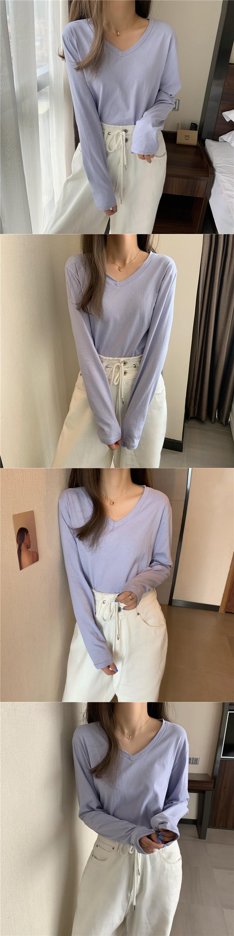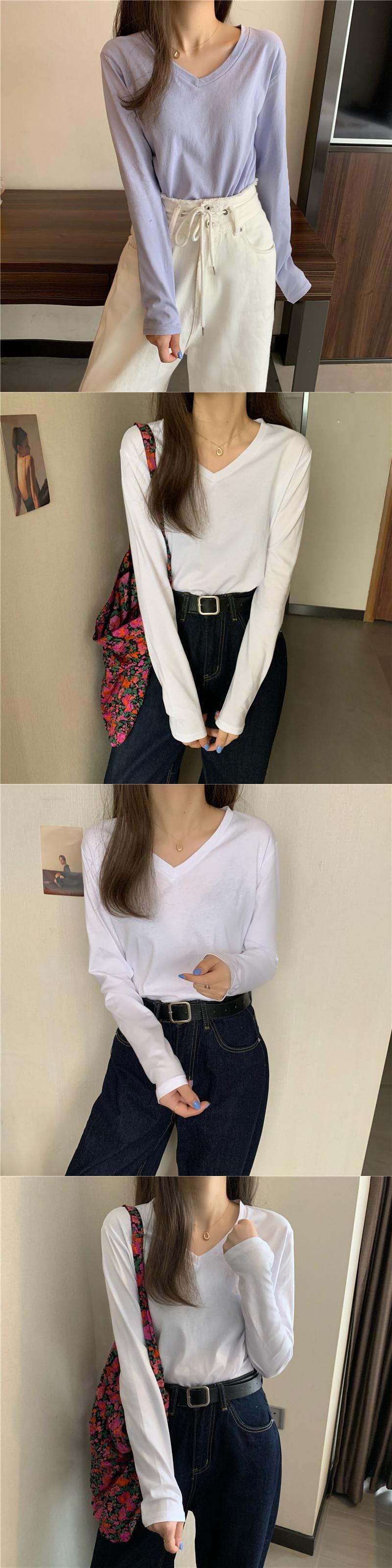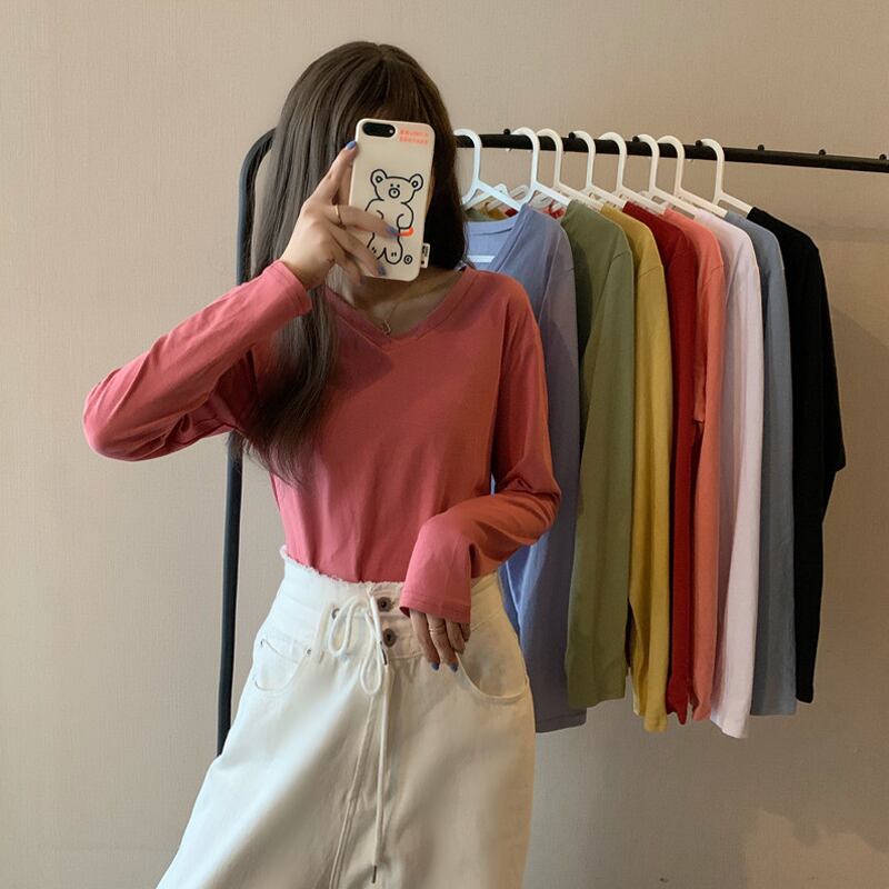 秋物VネックTシャツシャツ トレンドスプリングゆったりレディーストップス ロング 春物 オータム 長袖 YY59615168867