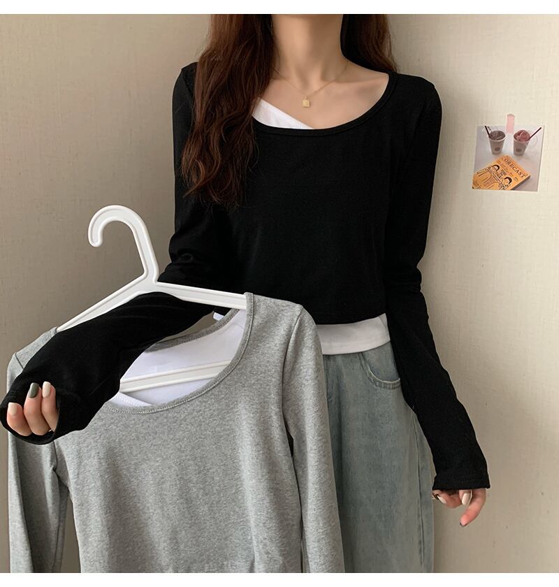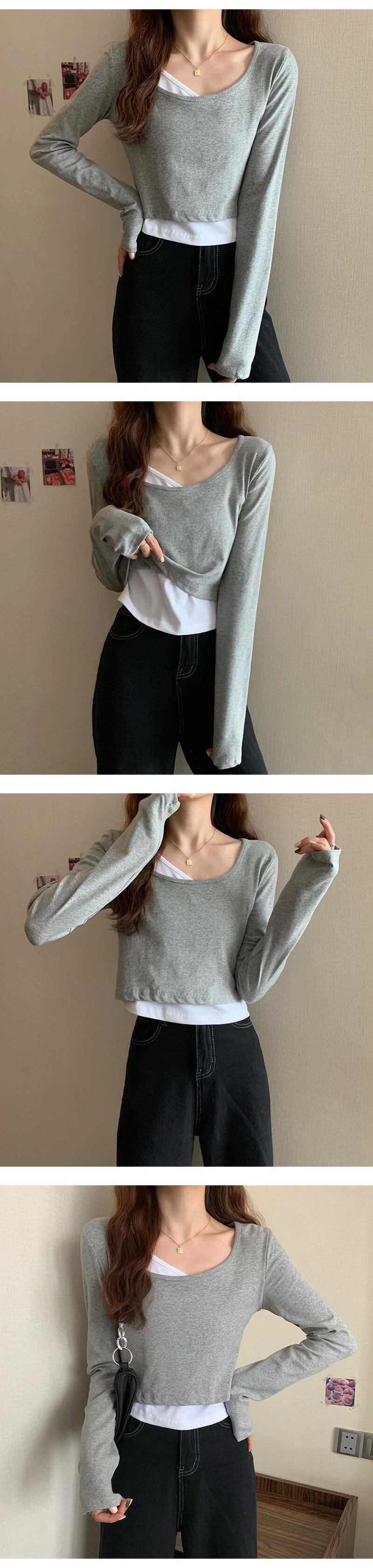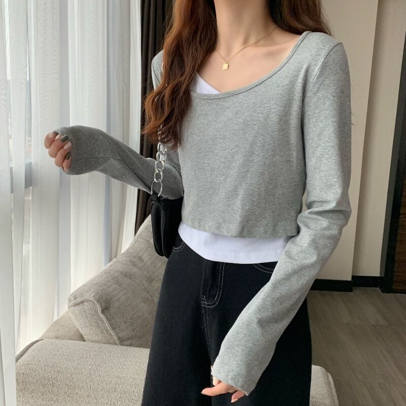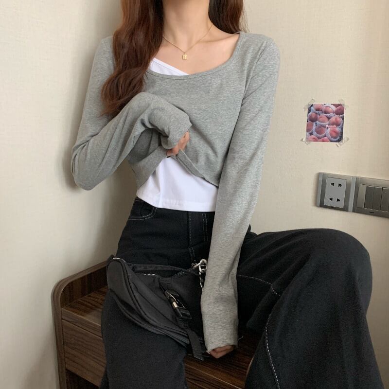 スタンダードTシャツレディース韓国ファッションスタイル薄手ショートトップス トレンド ロング レトロ 長袖 YY57537365339