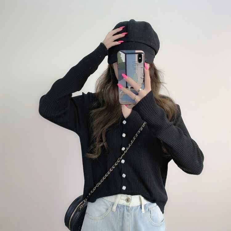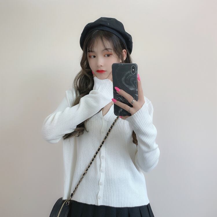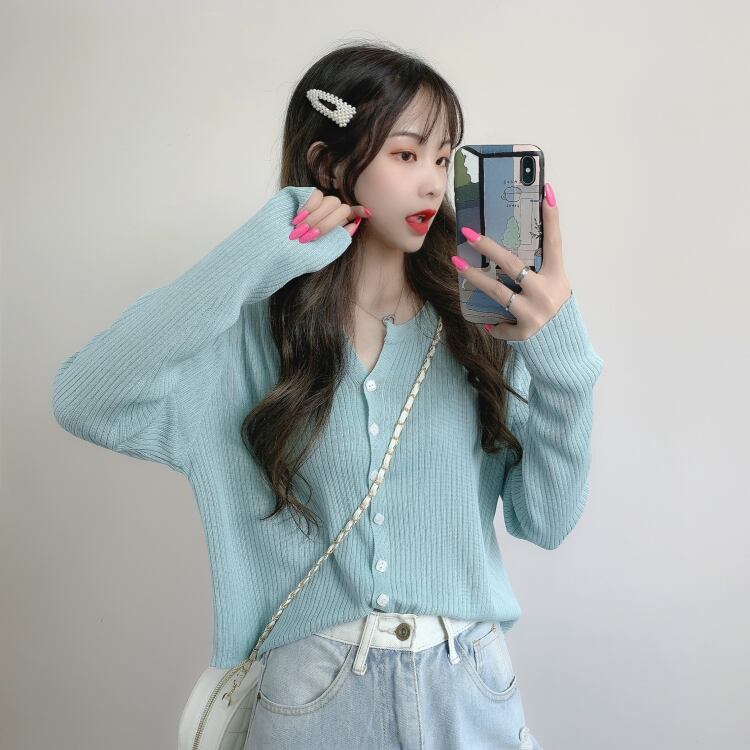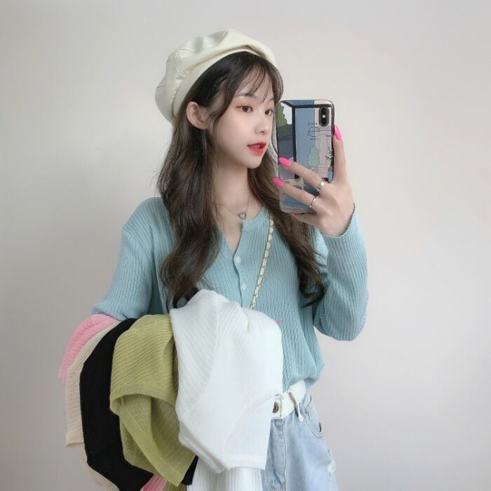スプリングニットセーター 韓国ファッションスリムホワイトショートカーディガンジャケット シャツ トップス ロング 春物 長袖 YY90915063874