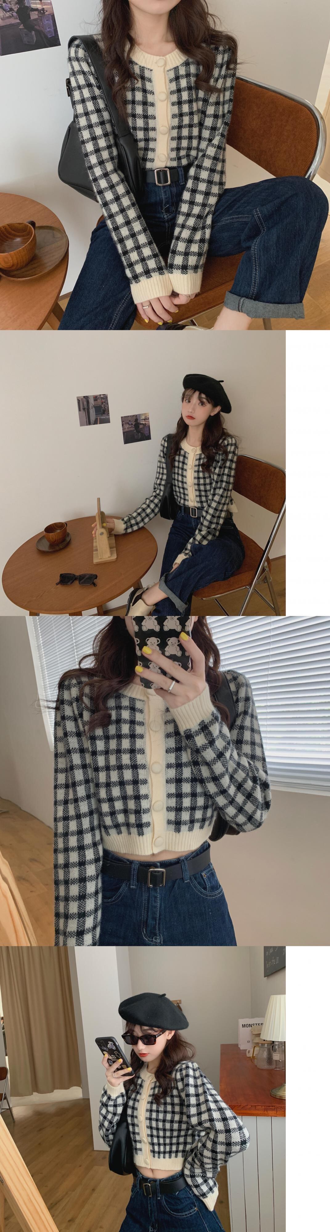 格子柄セーター ジャケット レディース秋物ニットカーディガンショートトップス ロング オータム 長袖 YY73256331171