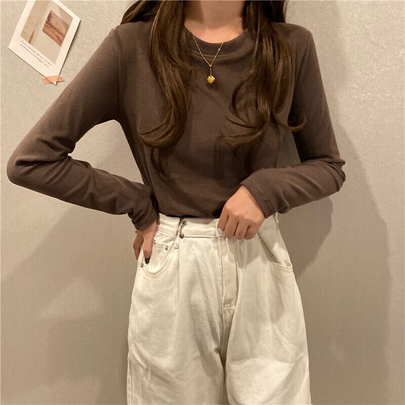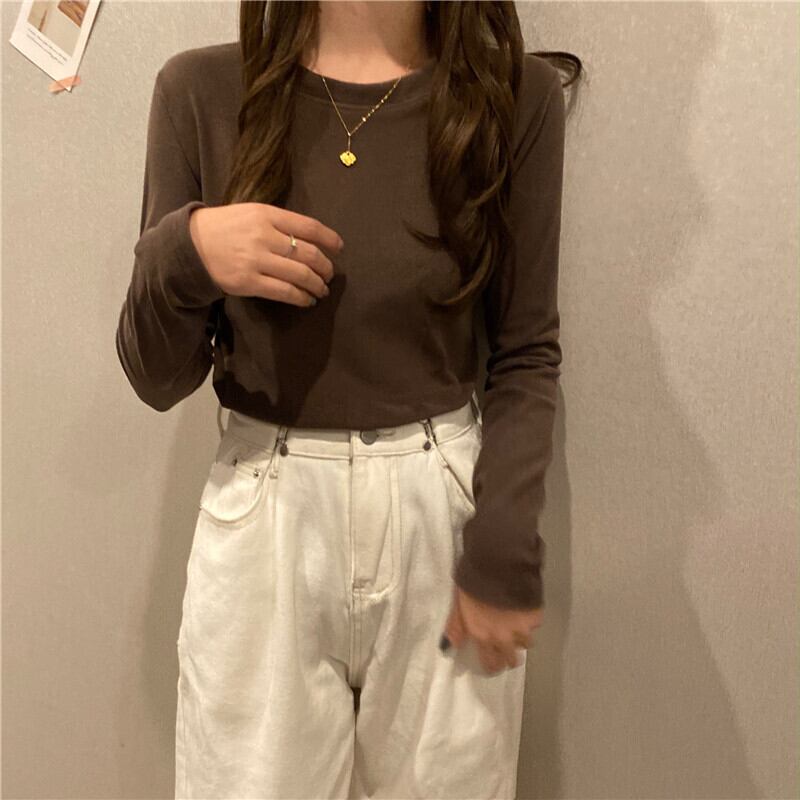 ホワイトゆったりシャツ スプリングスタイルラウンドネックTシャツトップス ロング 春物 Oネック 長袖 ワンナンバー37355337958