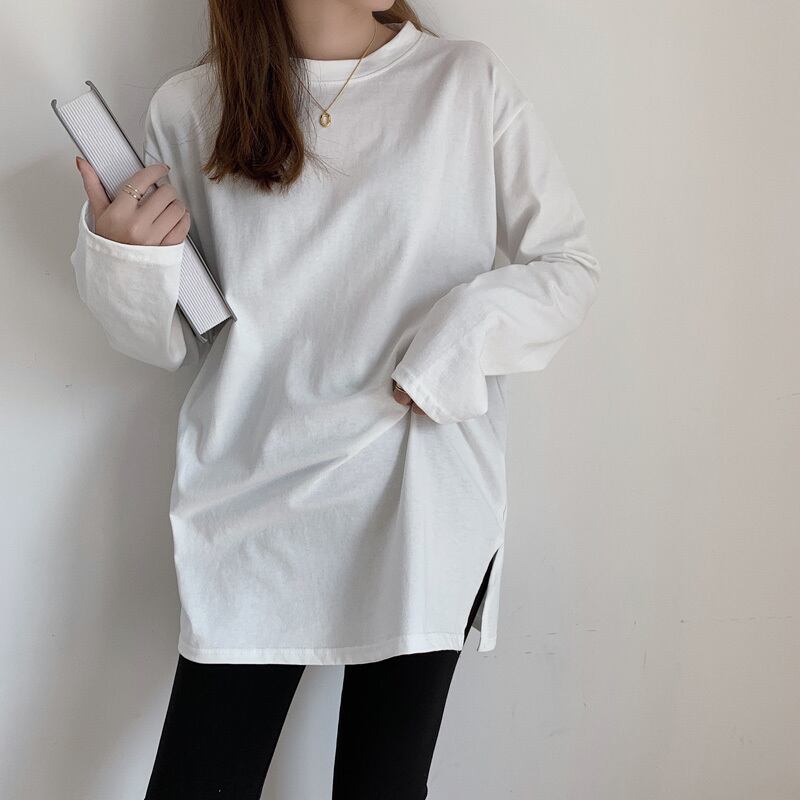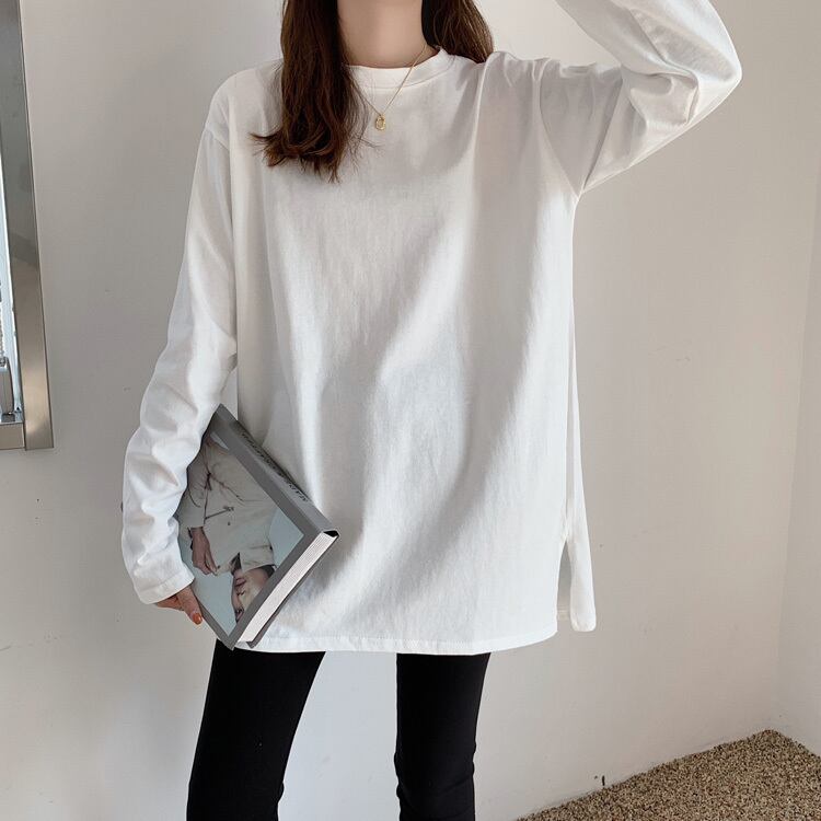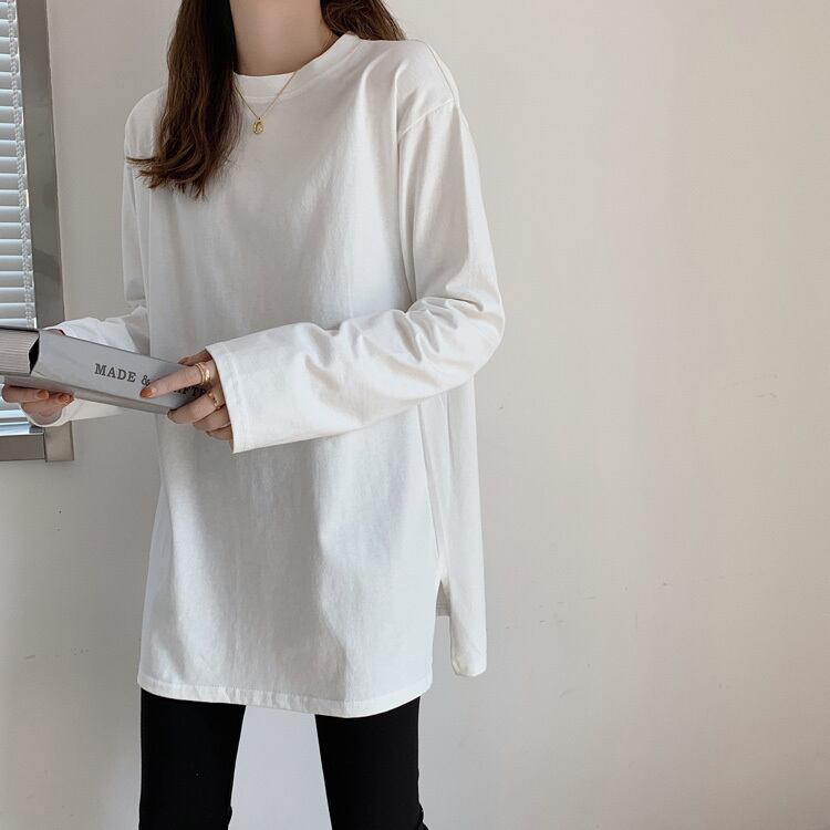 Tシャツシャツ スプリング夏服ルーズホワイトトップス ロング 春物 夏物 長袖 ミドル丈 ワンナンバー10566704489
