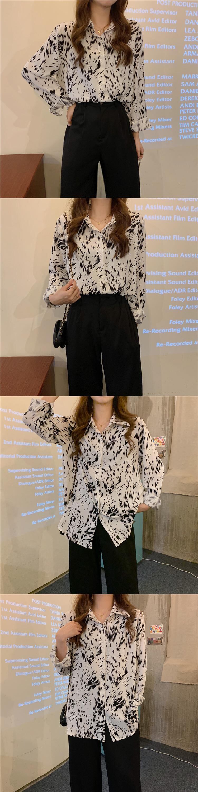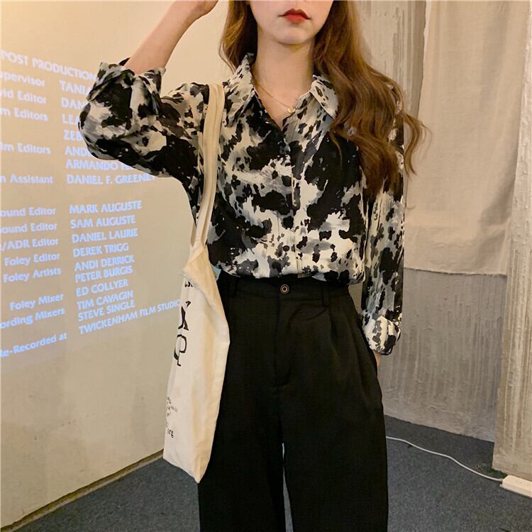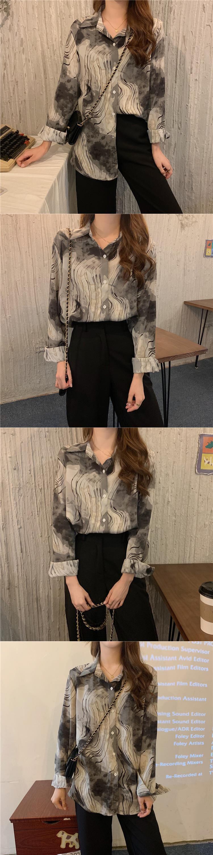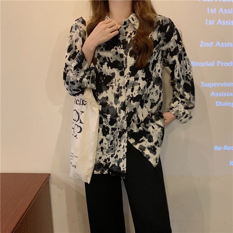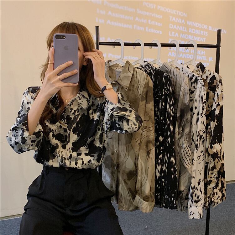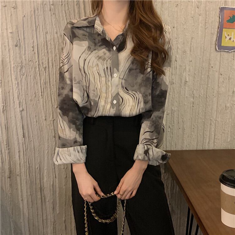 秋物スタンダードスタイルシャツ レディースルーズシフォントップス ロング レトロ オータム 長袖 ワンナンバー6824105091