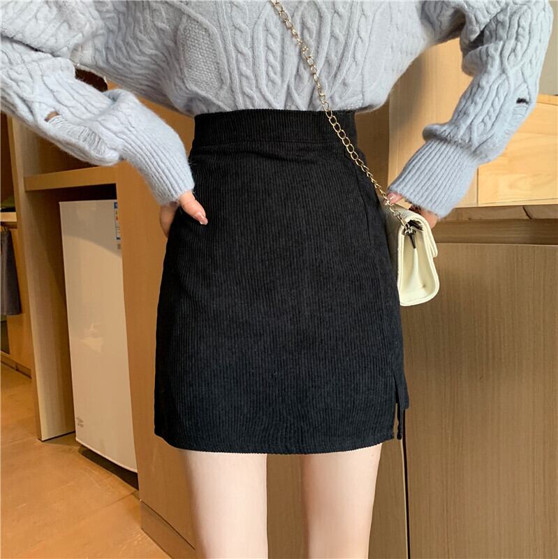スプリングスカート ハイウェストコーデュロイAラインショート 春物 ウエスト ワンナンバー95882832252