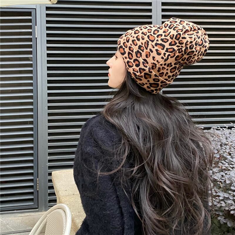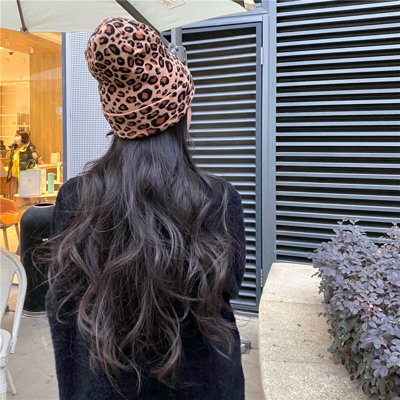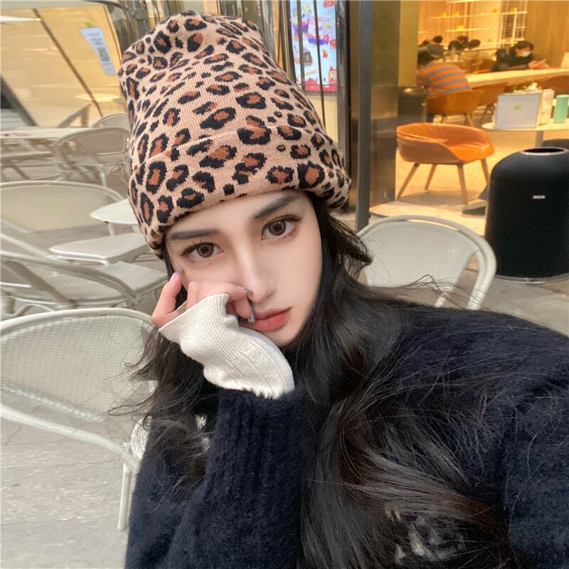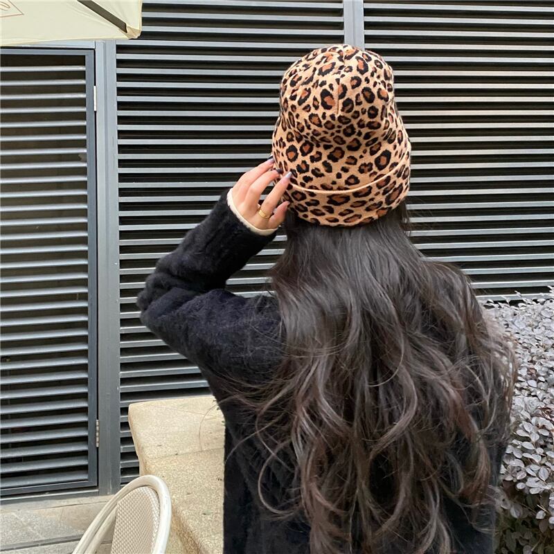 レオパードプリント柄レディースウィンター韓国ファッションニットトレンド 帽子 冬物 YY89419104585