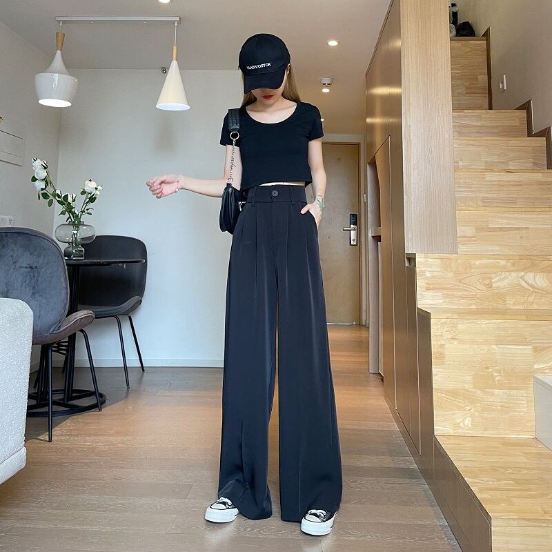 パンツ スプリング夏服ハイウェスト薄手ルーズブラック 春物 夏物 ウエスト ワンナンバー74758814733