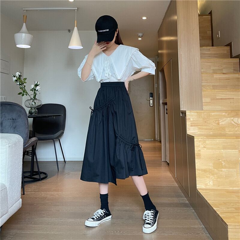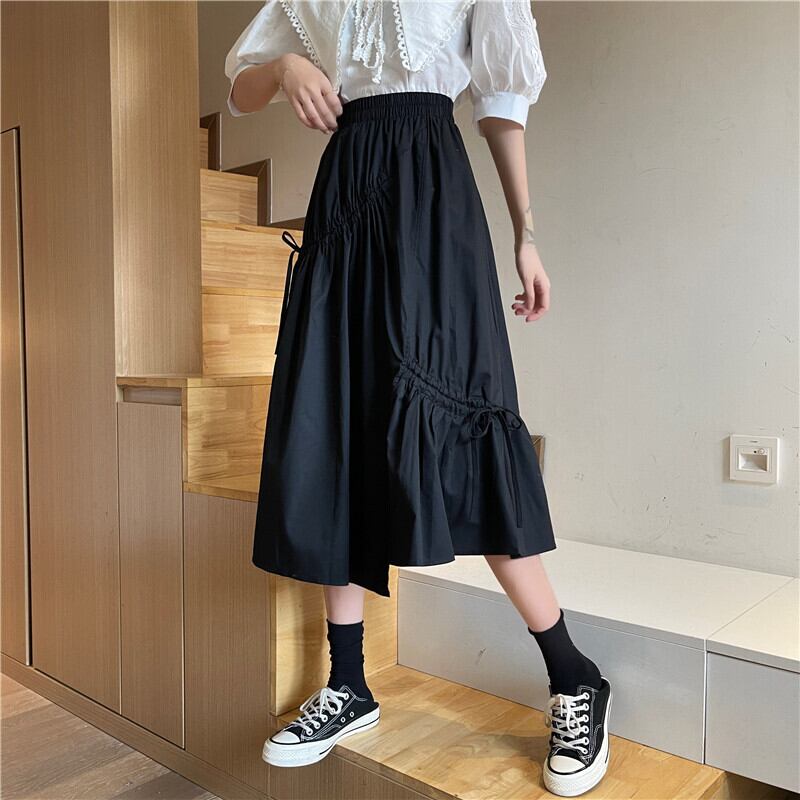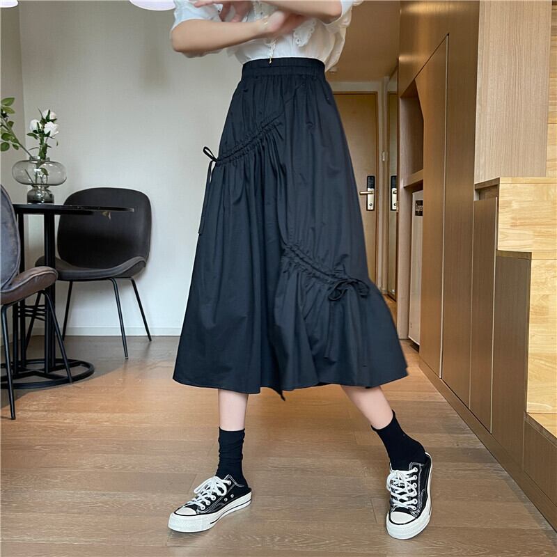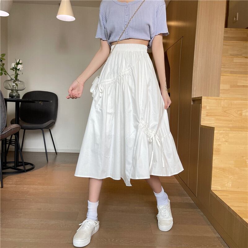 スプリング夏服スカート レディースAラインギャザーリボン 春物 夏物 ミドル丈 ワンナンバー8208627583