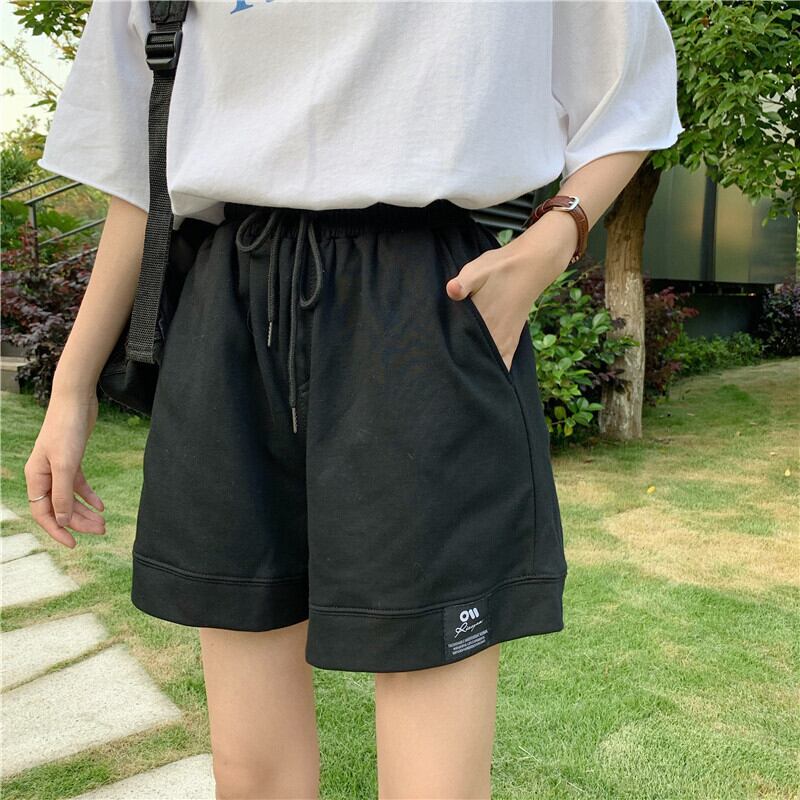 ブラックショーツ スプリング夏服ハイウェストウェストカジュアルパンツ ルーズ 春物 夏物 ウエスト ワンナンバー5236654041