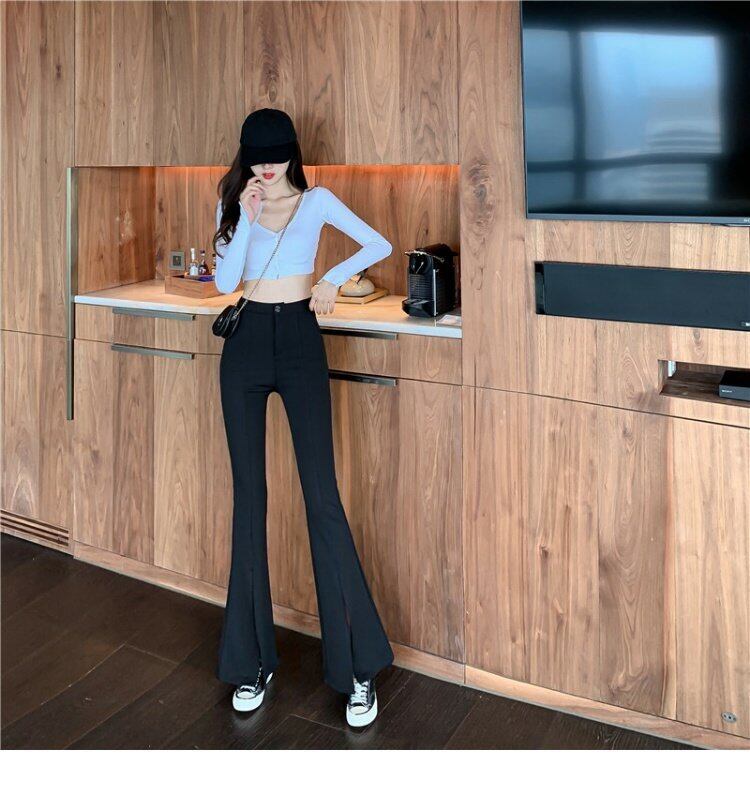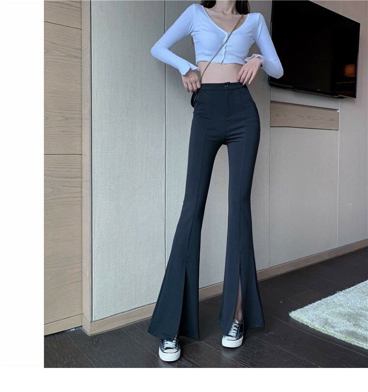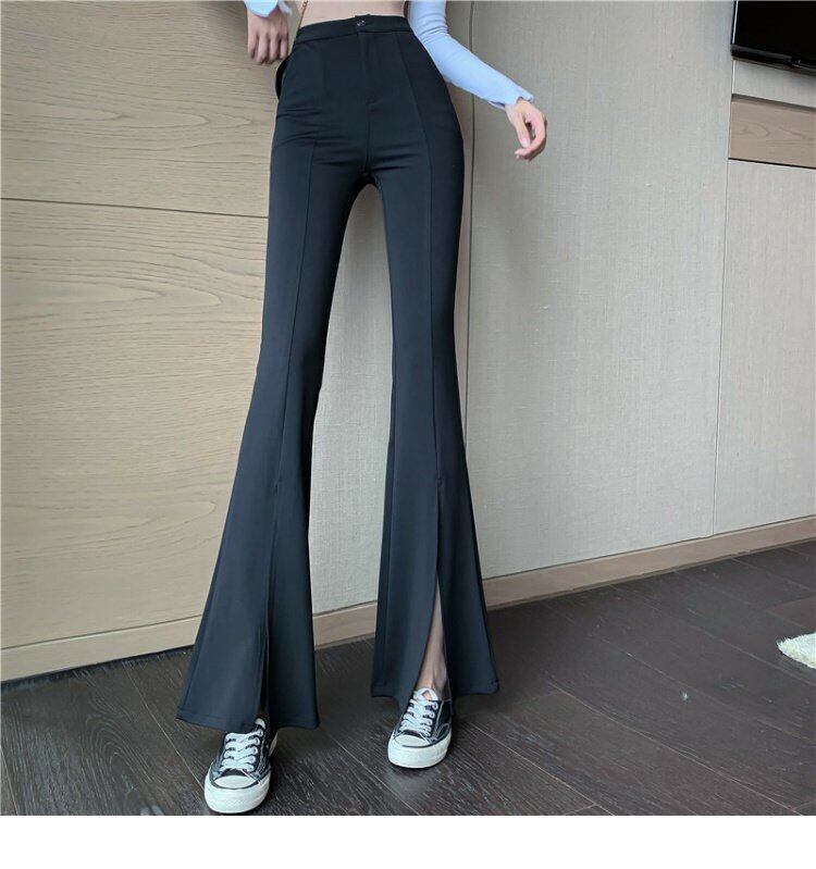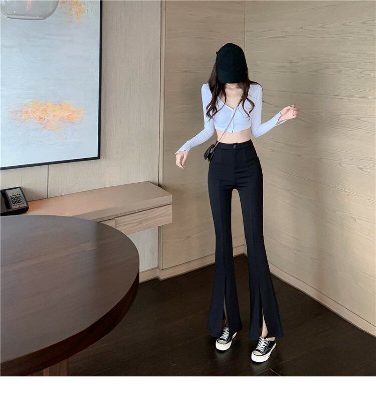 薄手パンツ ハイウェストウェストカジュアルスプリング秋物スリムスリット レッド 春物 オータム シルク ウエスト YY5818573837