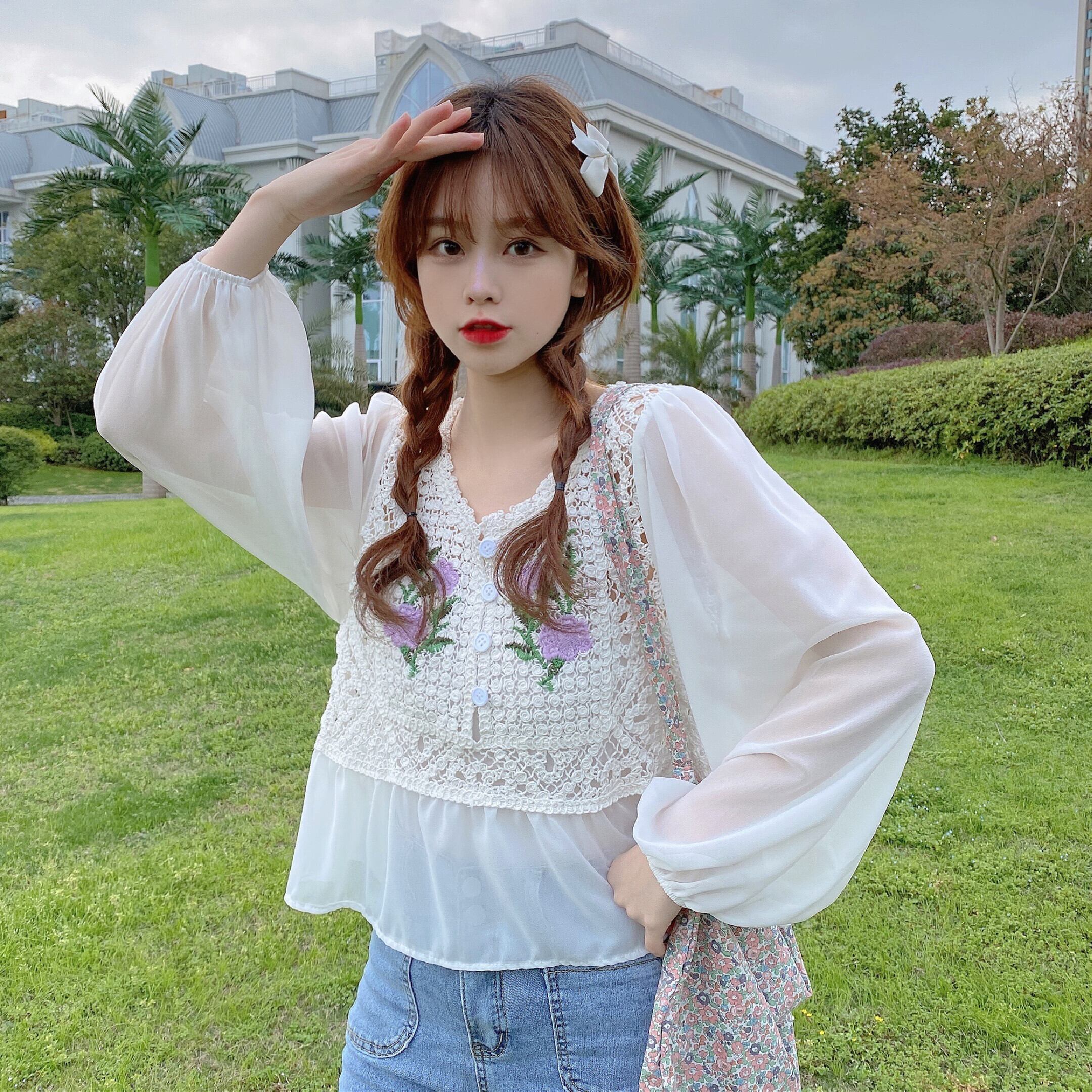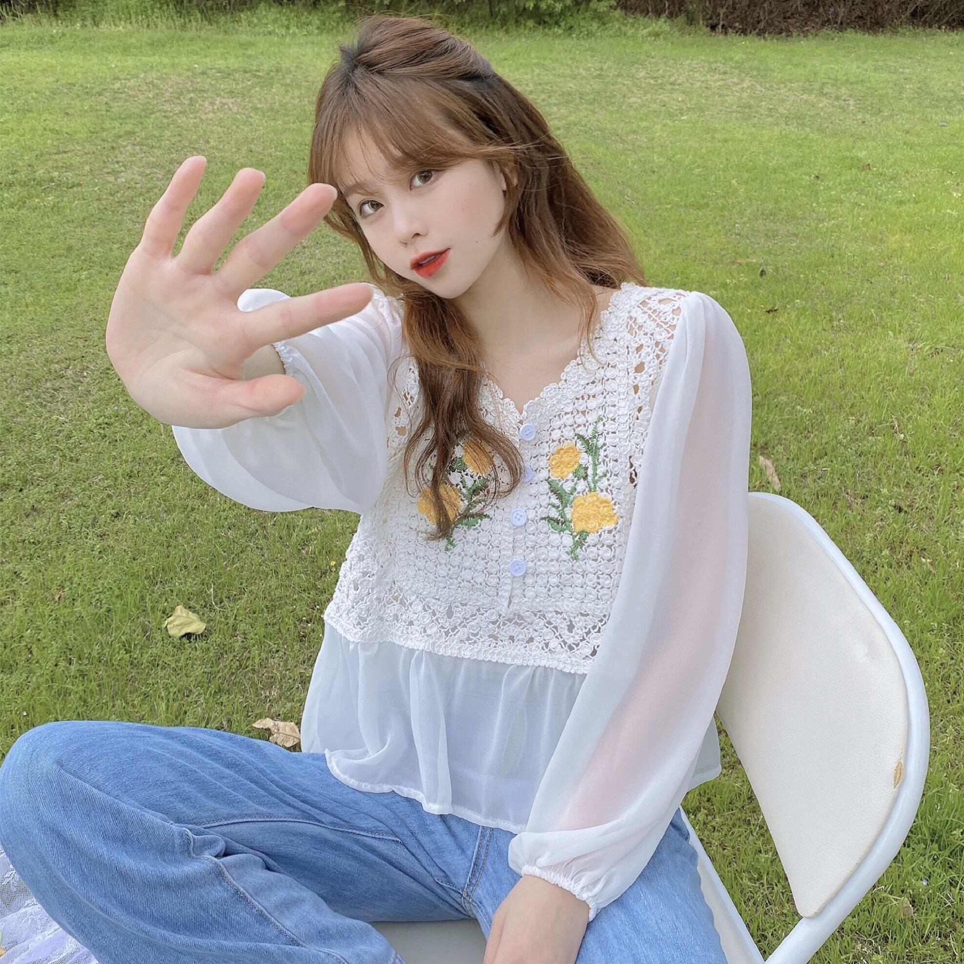 シャツ スプリング韓国ファッションVネックルーズトップス ロング 春物 スタイル 長袖 ワンナンバー49784572172