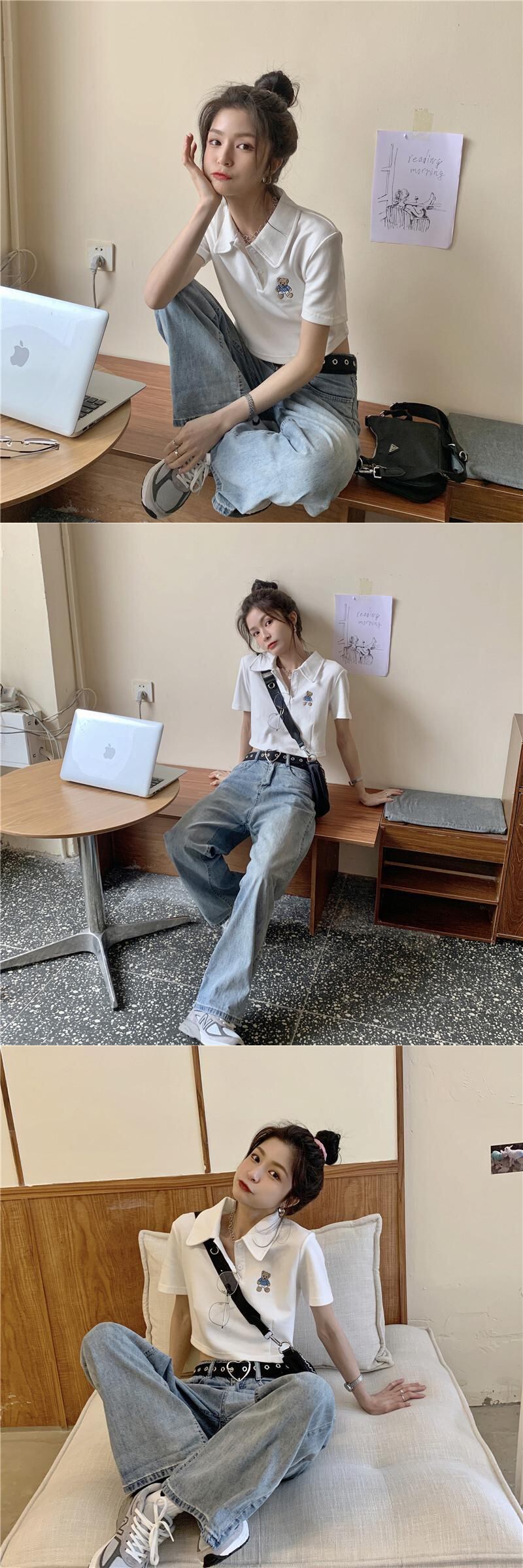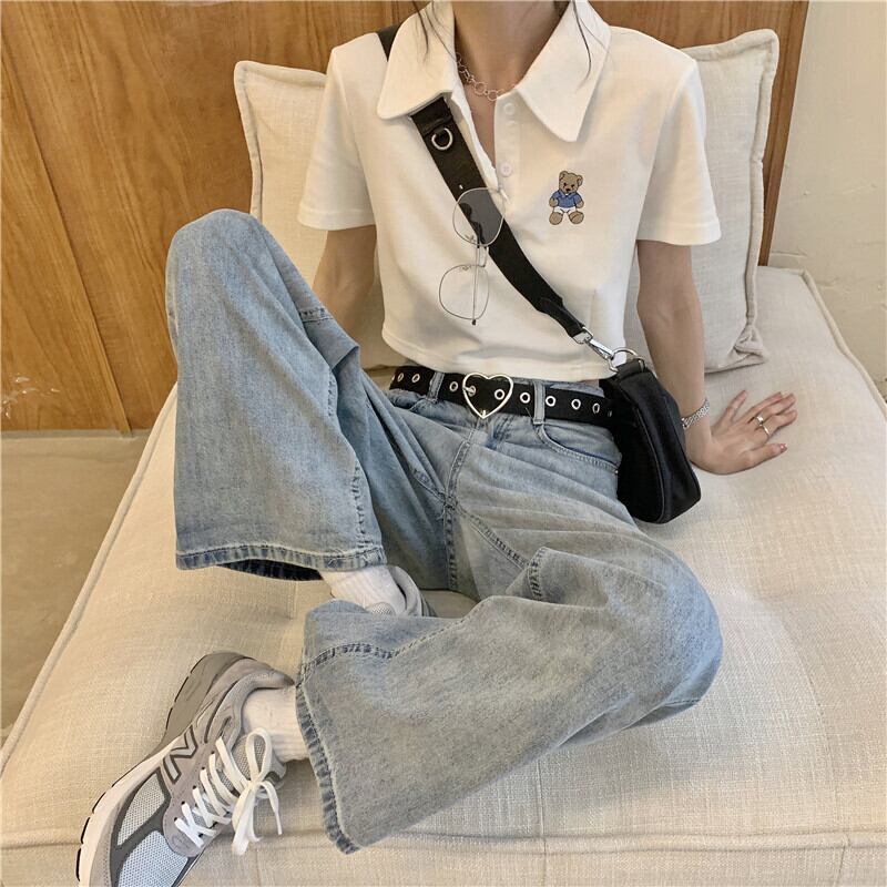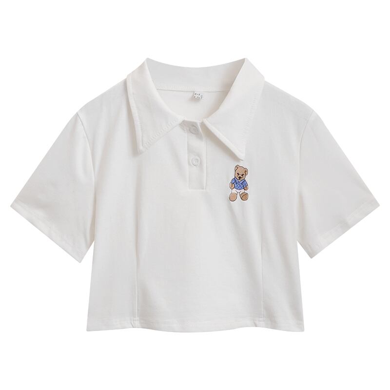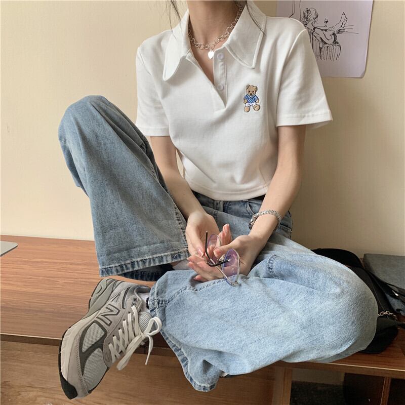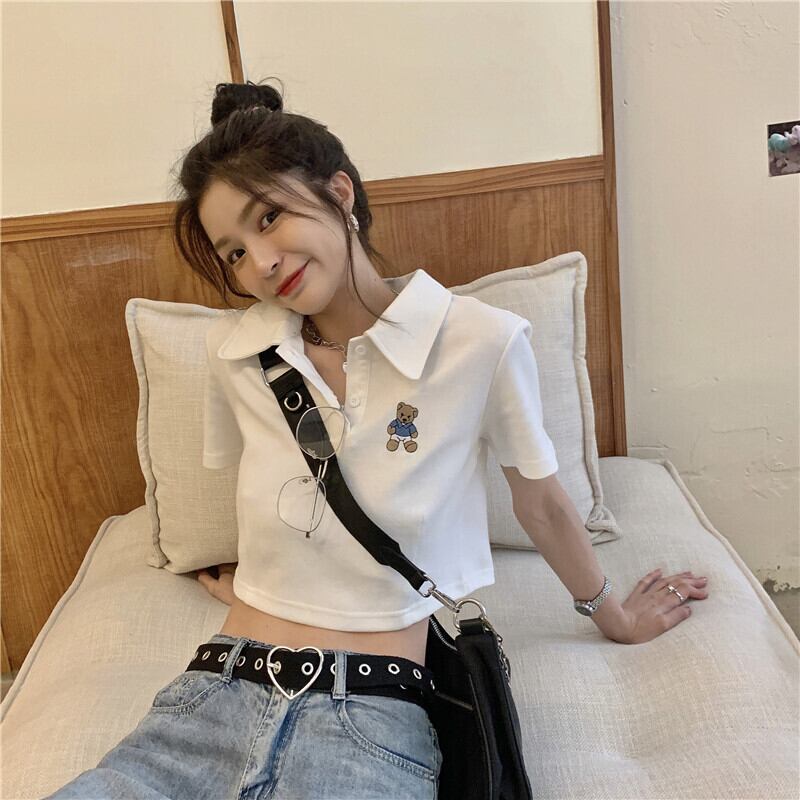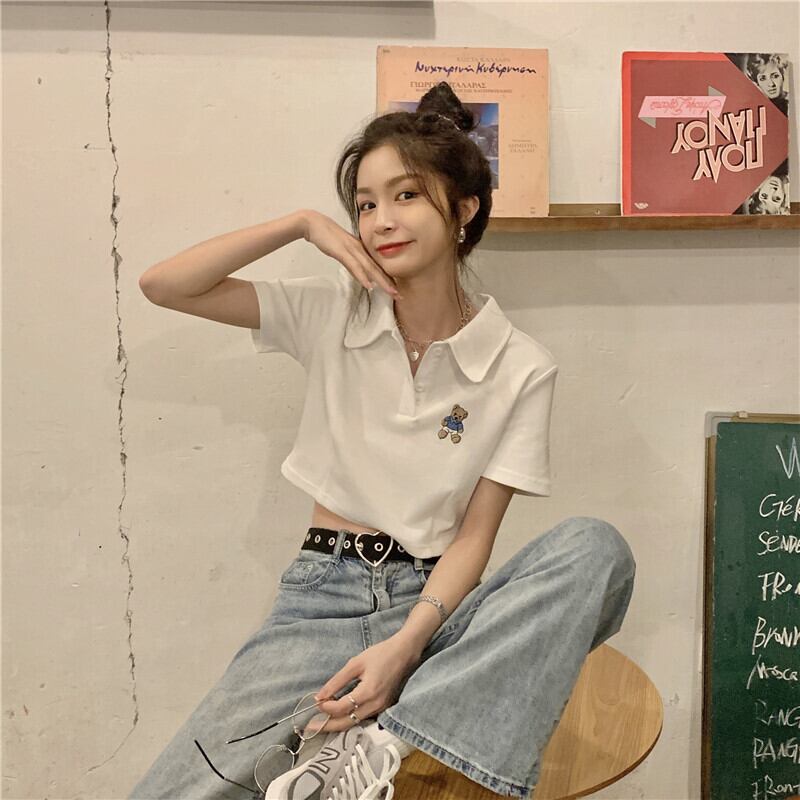 ショート夏服刺繍トップス トレンドホワイトTシャツ 夏物 ワンナンバー45115924484