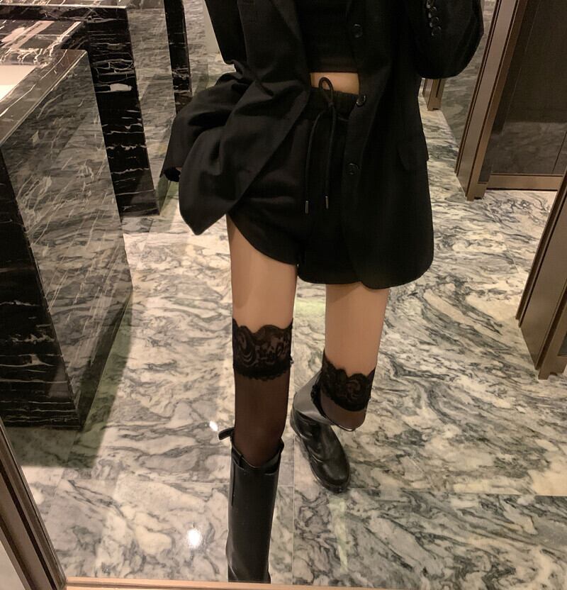 トレンドレースホワイトストッキング 秋物薄手ゆったりソックス オータム タイツ シルク YY78471660499
