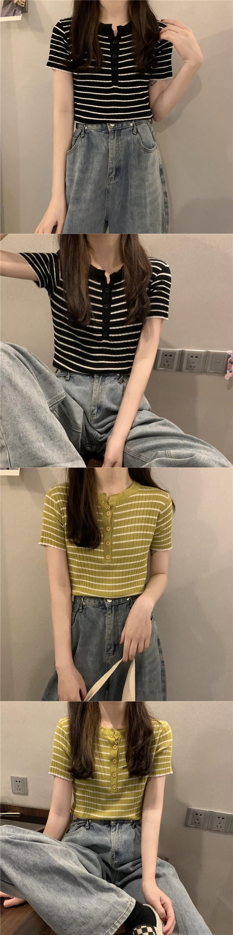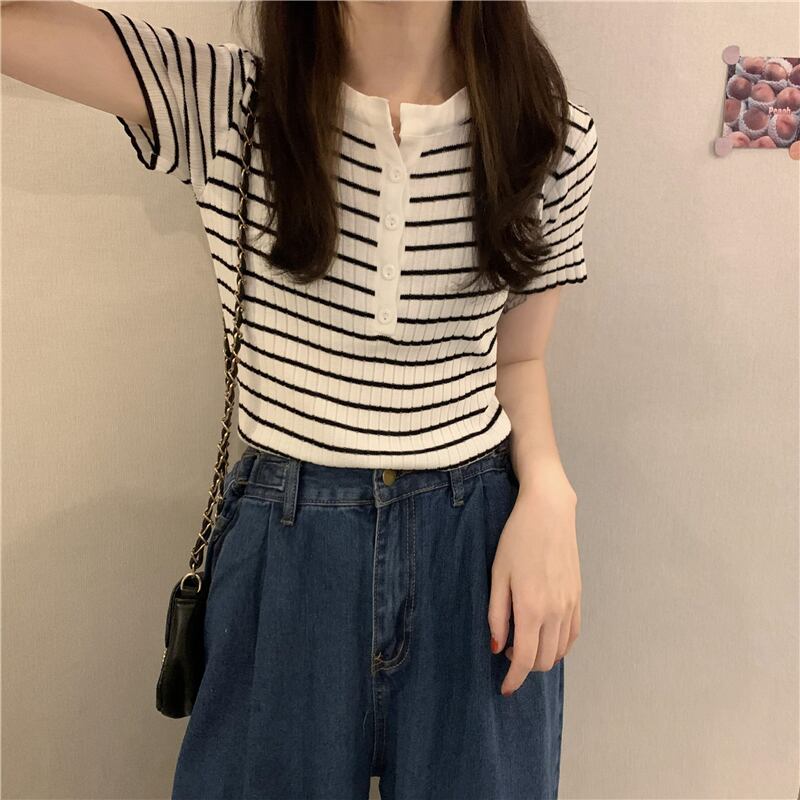 ストライプニットTシャツシャツ スプリング夏服ゆったり韓国ファッションスタイルトップス 春物 夏物 ワンナンバー62780830164
