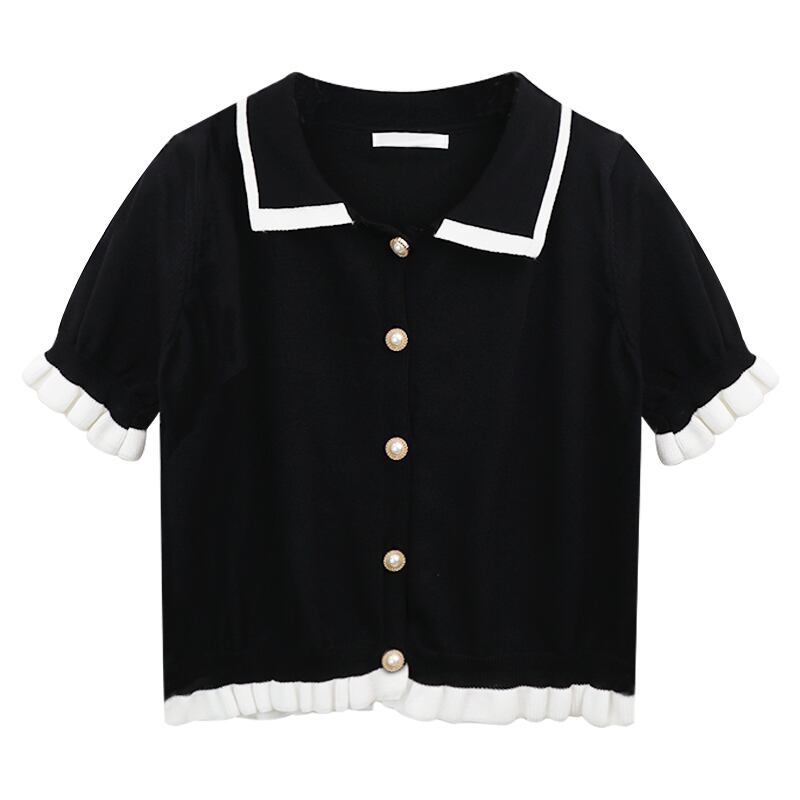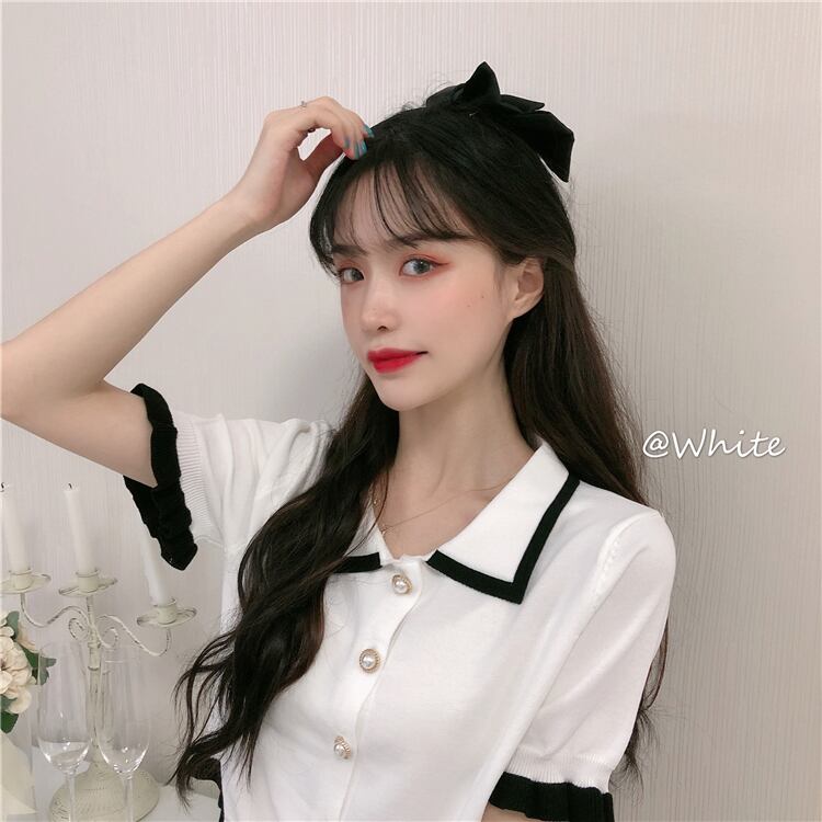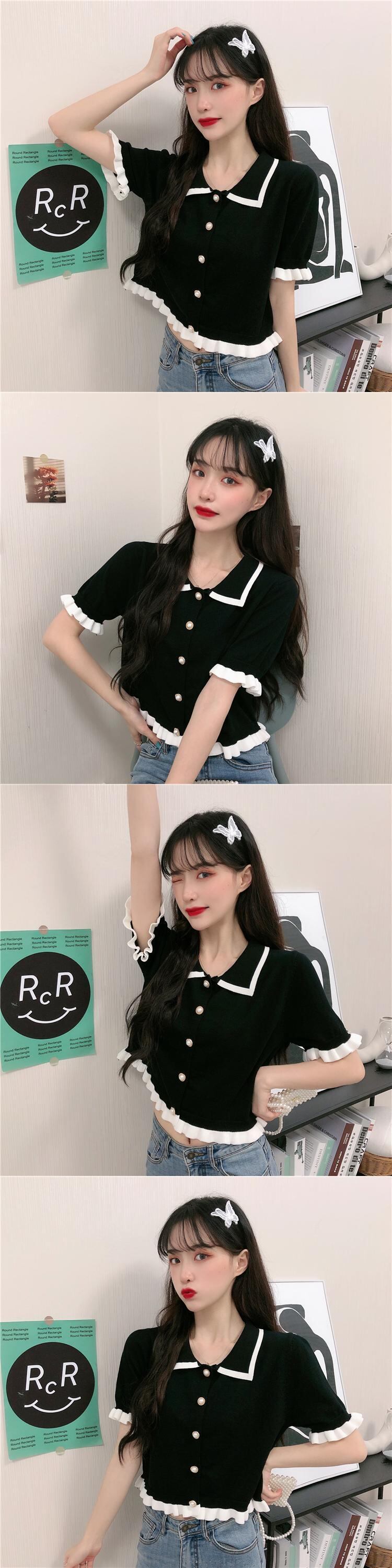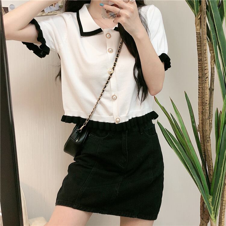 カラー薄手ニットショートTシャツレディース夏服ルーズ 夏物 ワンナンバー5318821541