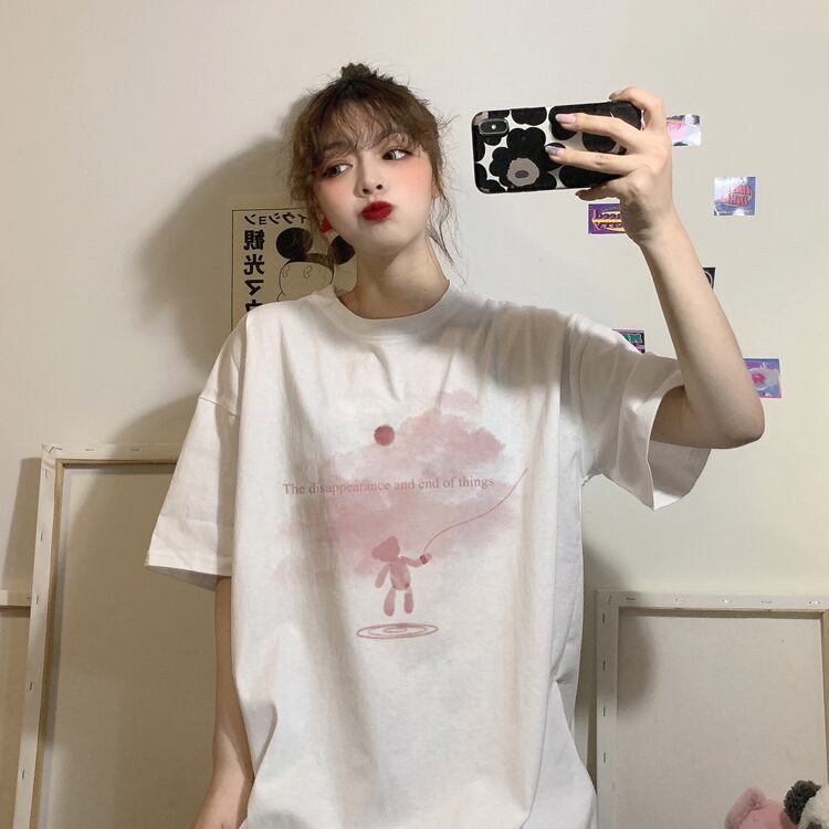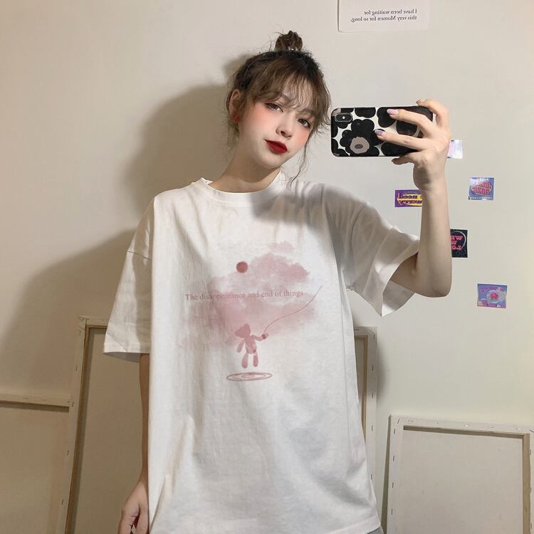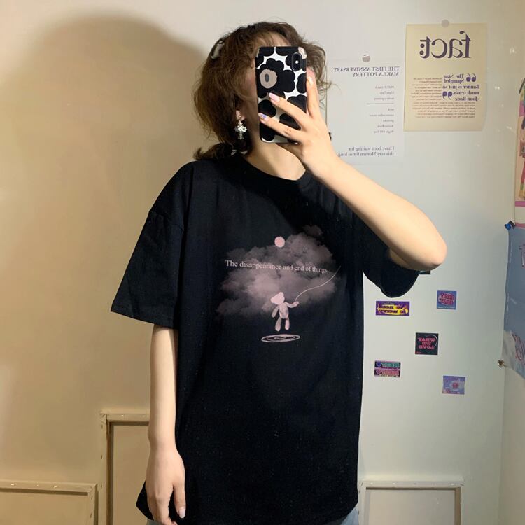 レディース夏服スタイルプリントブラックTシャツトレンドルーズホワイト 原宿 夏物 ワンナンバー71048403061