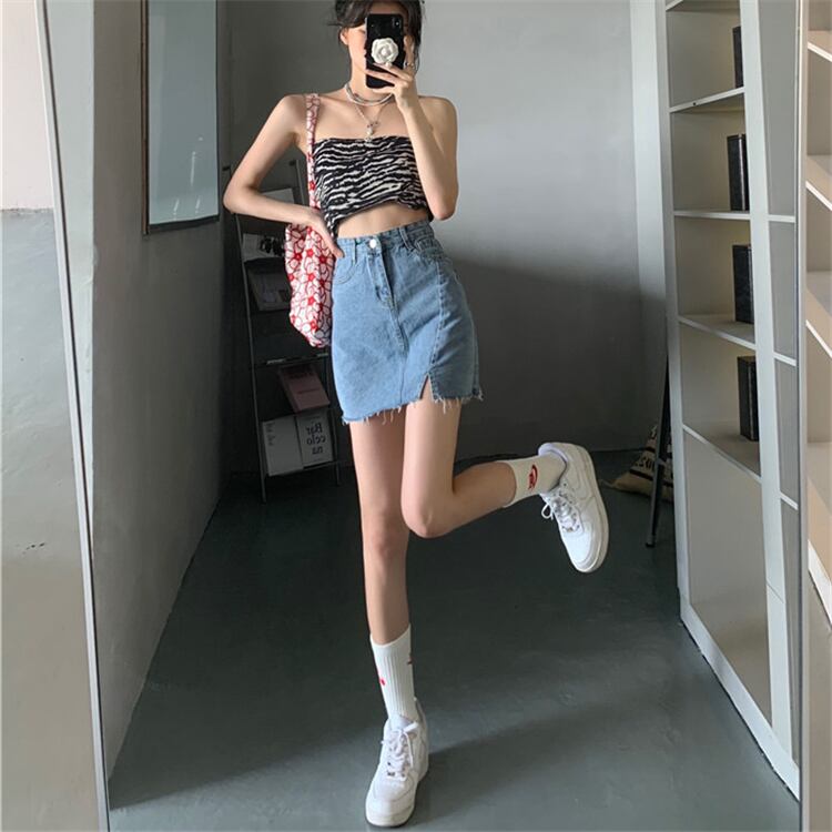 スプリング夏服スカート レディースAライン韓国ファッションスタンダードスリットハイウェストウェスト薄手 レトロ 春物 夏物 スタイル ウエスト ワンナンバー35234825464
