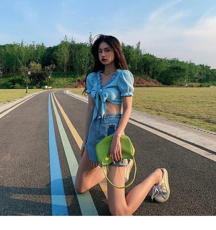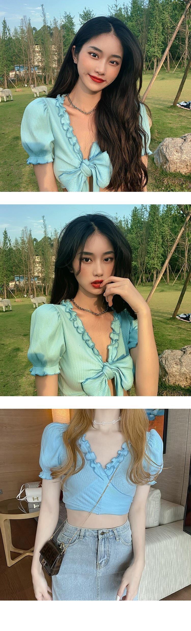 ショートゆったりシャツ スリムトップス レディーススプリング夏服VネックTシャツ 春物 夏物 YY90615675553