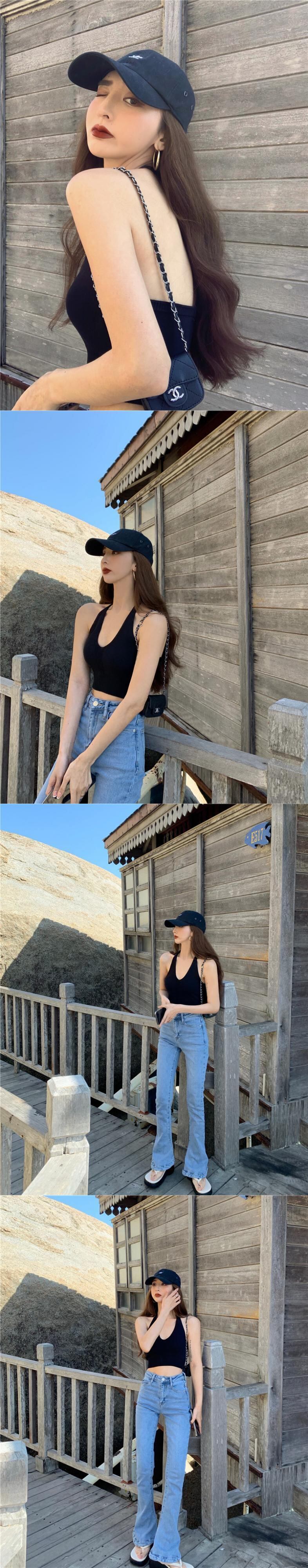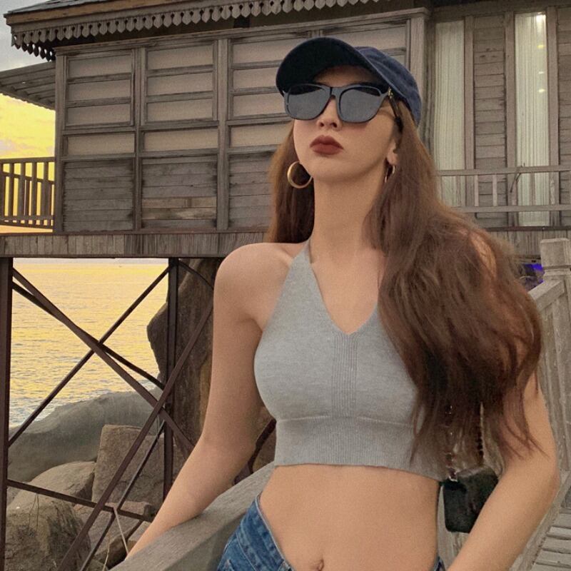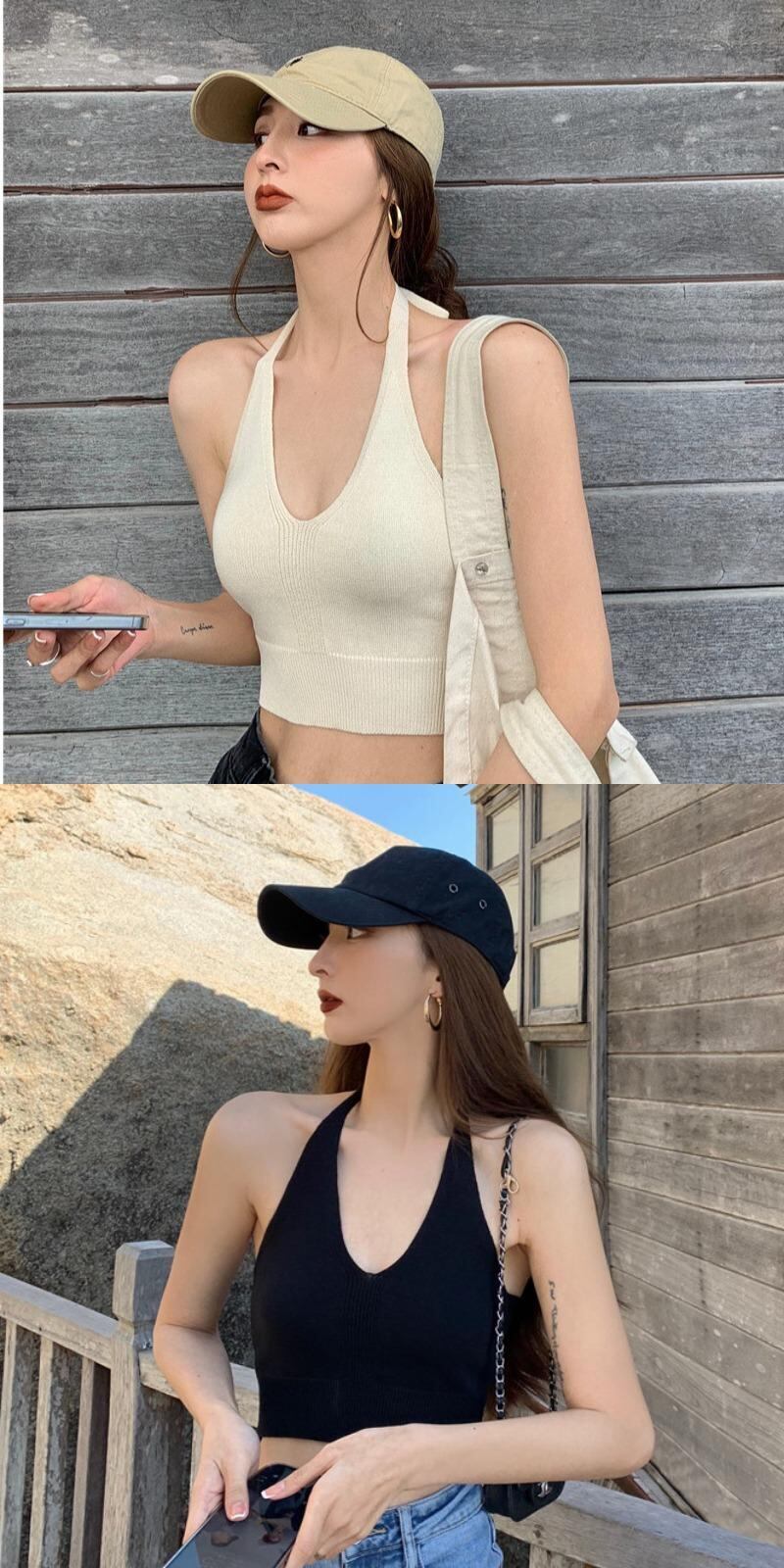 Vネックノースリーブニットゆったりシャツ 夏服ショートホルタートップス 夏物 YY78406254170