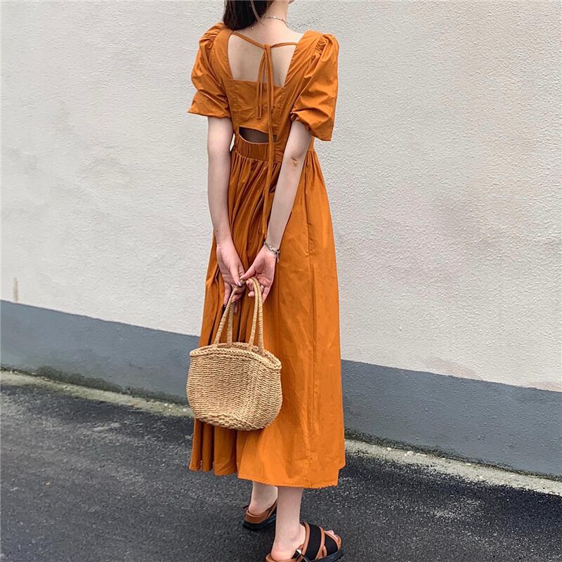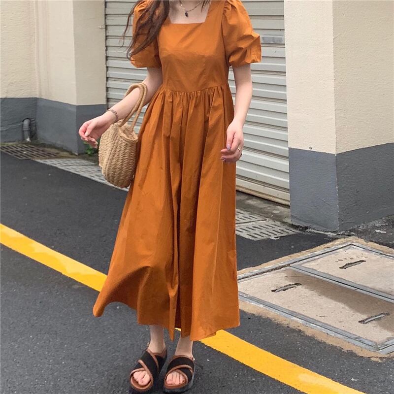スリーブワンピース夏服スタイルロングスカート 大人ガーリー スウィート キュート カジュアル 夏物 スクウェア YY49927111684