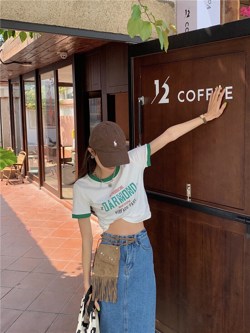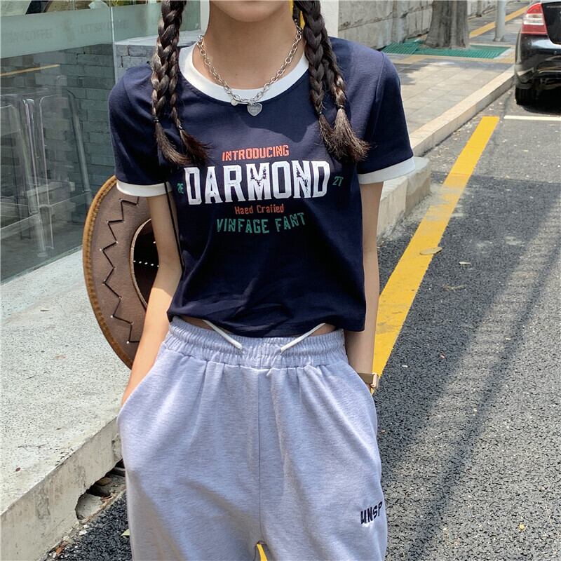 夏服カラープリントラウンドネックショートトップス トレンドTシャツレディース 夏物 Oネック YY31670009038