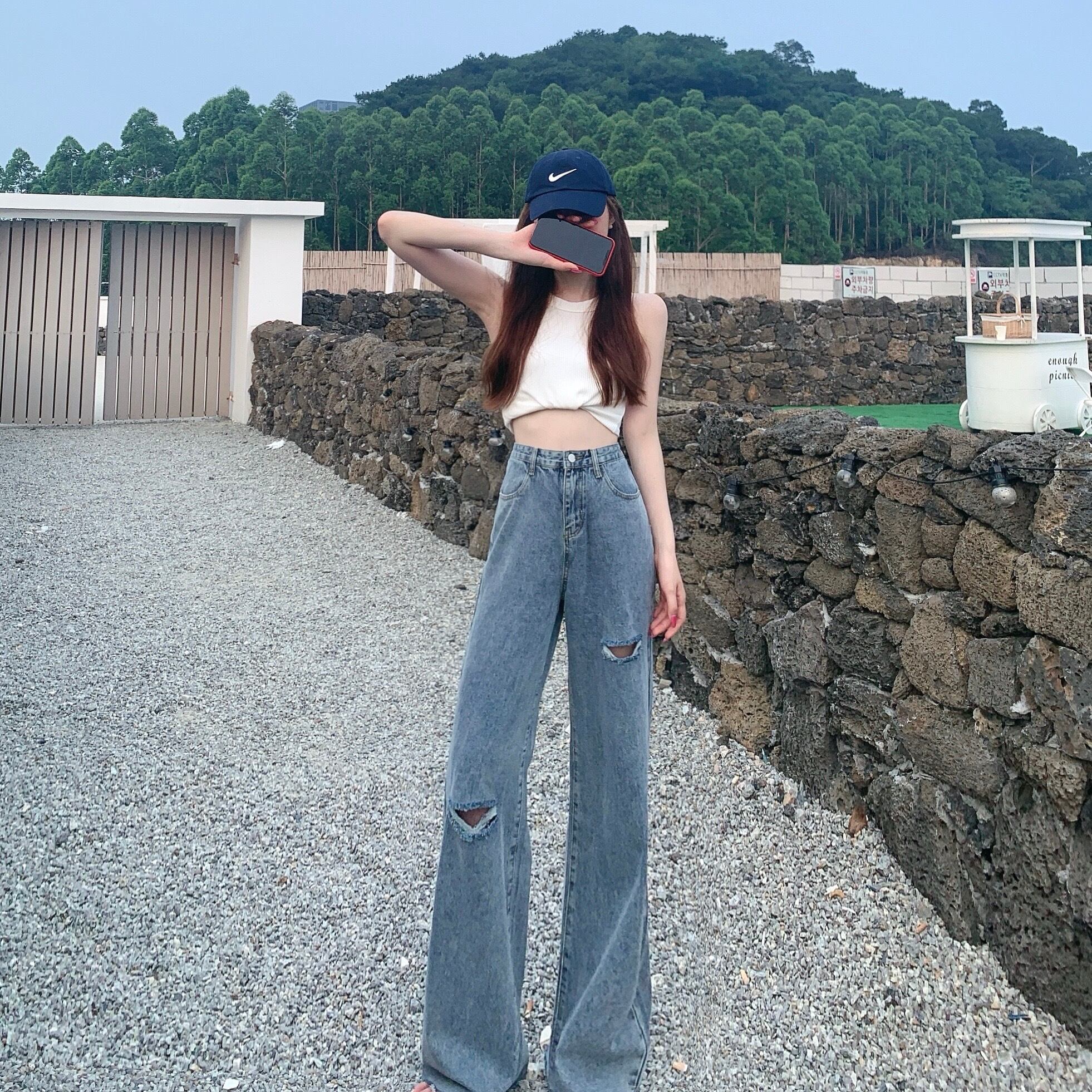 ジーンズ 夏服薄手 ハイウェスト 夏物 ウエスト YY85916200479