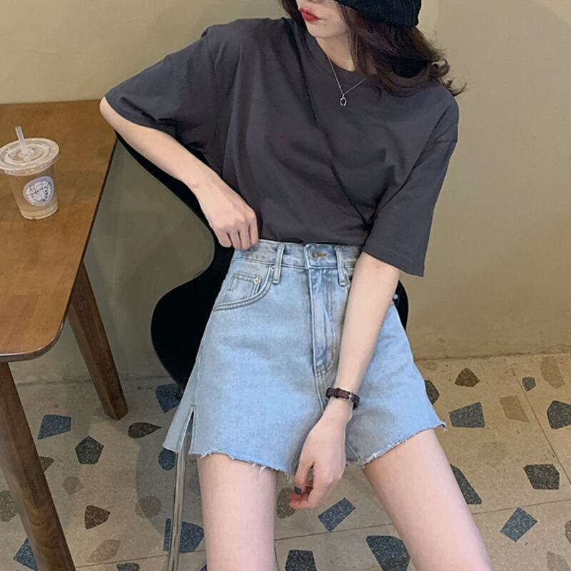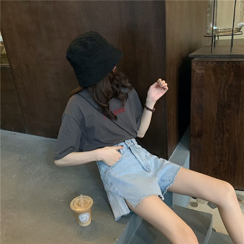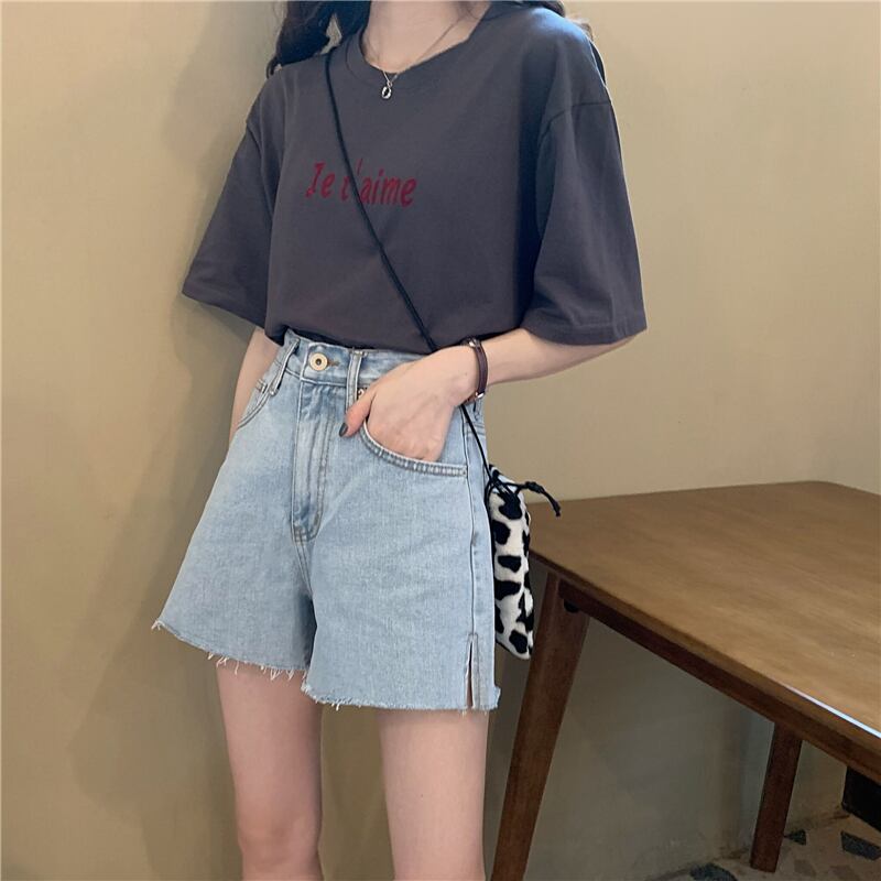 ジーンズ レディース夏服ルーズスタンダードブルーパンツ トレンドショーツ ハイウェストウェスト レトロ 夏物 ウエスト SYJ19913576575