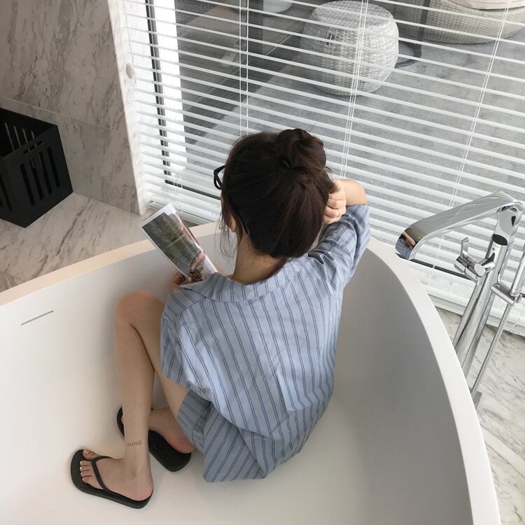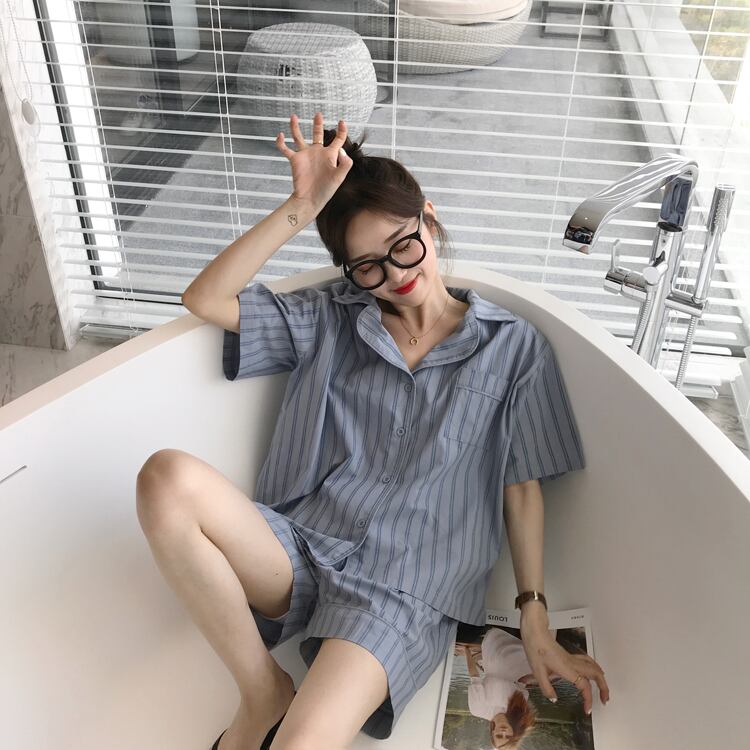 パジャマストライプ夏服スタイルルームウェア 上下セットアップ 夏物 SYJ63794438989